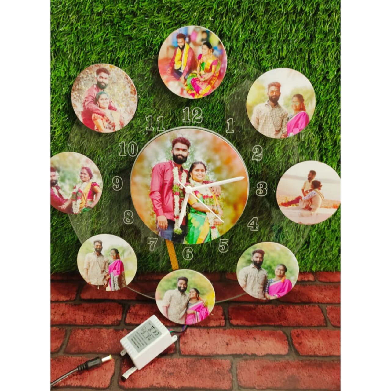 Enhance the everlasting memory with the designer aspect of an acrylic wall clock now available with remote LED for convenient use. You can customize it with images of your choice. Refresh your mornings with this wall clock and restore happiness with its unique design.