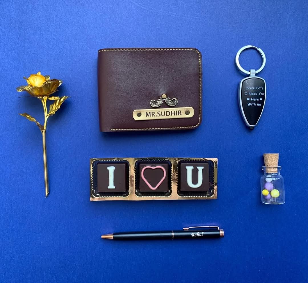 Scope of one name engraved on the wallet & pen and charm customized on the wallet.