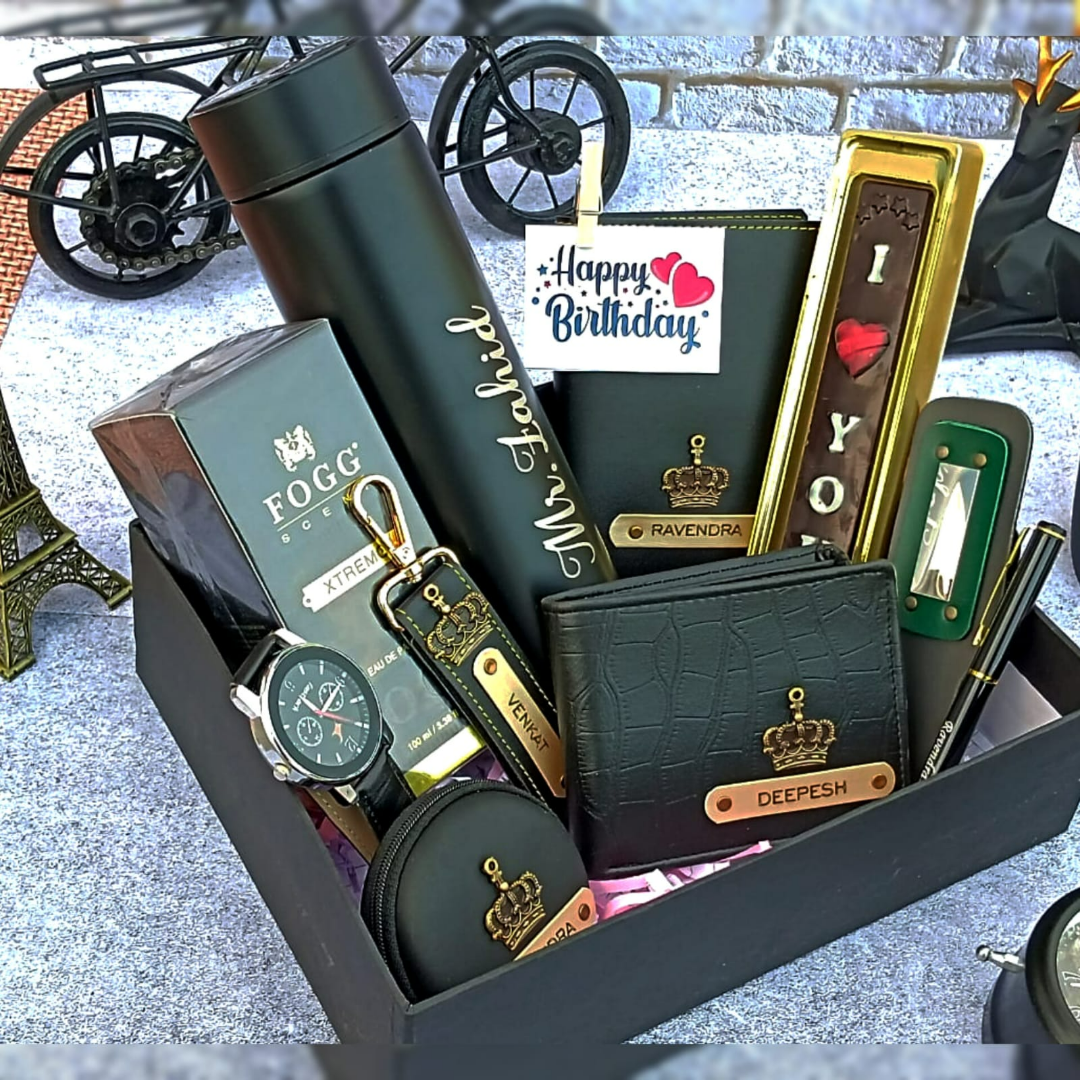 The Black Men Hamper 7.0 is the ultimate gift for the stylish man. This exclusive collection features high-quality leather items that exude luxury and sophistication. Perfect for the modern gentleman, this hamper is sure to impress with its sleek design and premium materials.