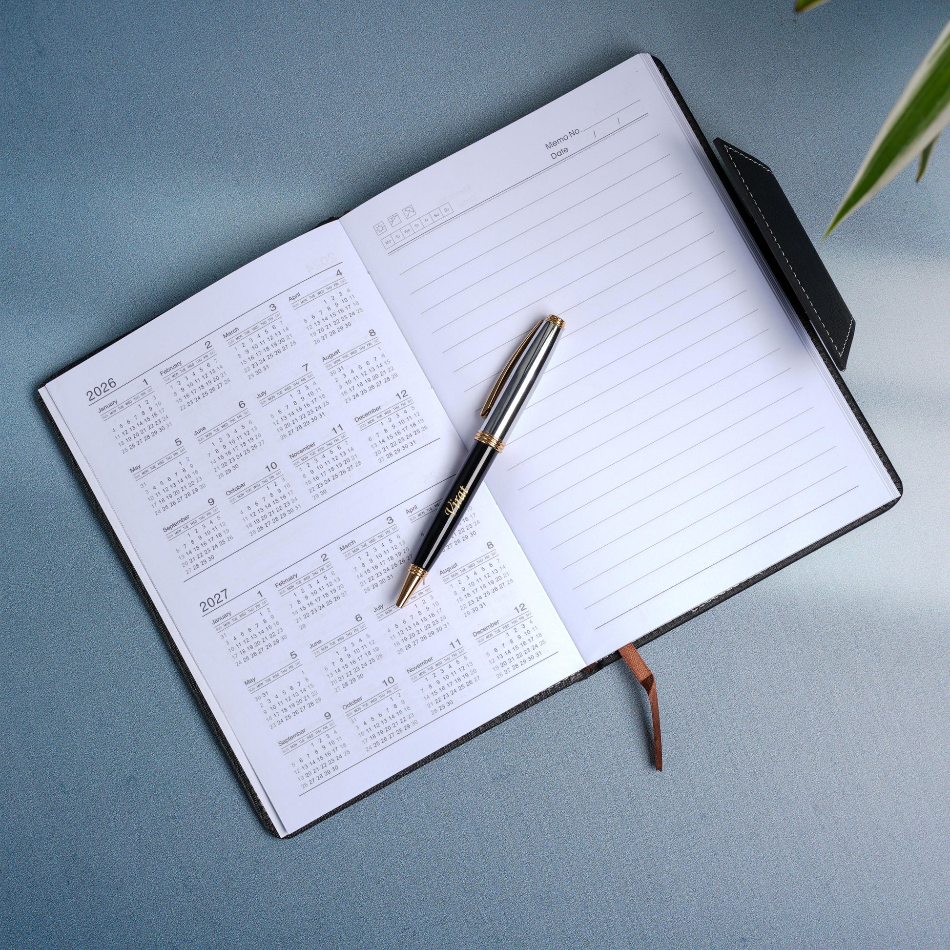 This surprising combo for all special occasions includes an A5 size bosch diary with a hardcover and any color virtus pen. Both items can be customized with your name. The combo is available in two colors.