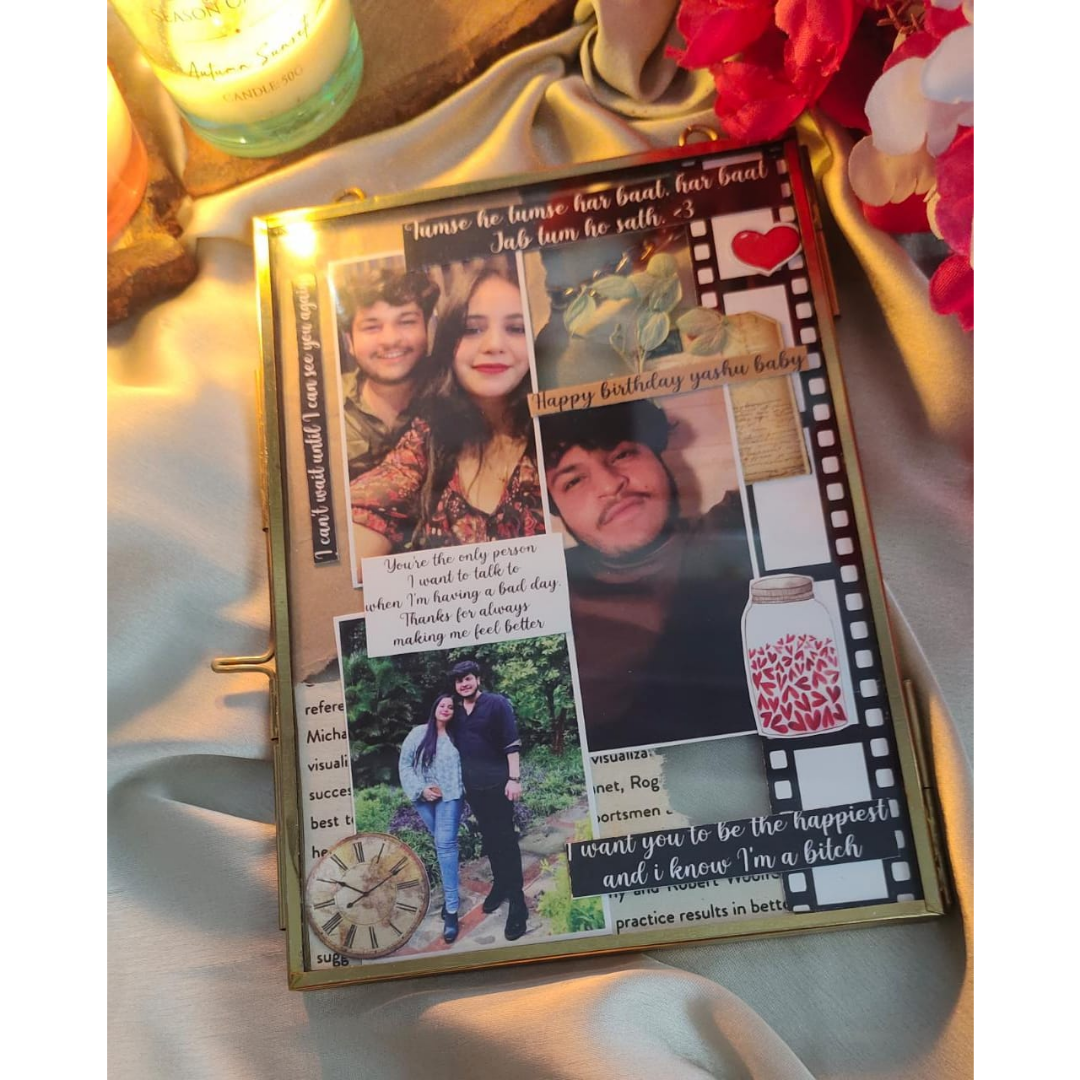 An ideal gift for all occasions, Vintage Frame. It is formed on transparent glass which you can customize with pictures, stickers, and text. Vintage is never out of the trend. Please your dear ones with this vintage style frame.