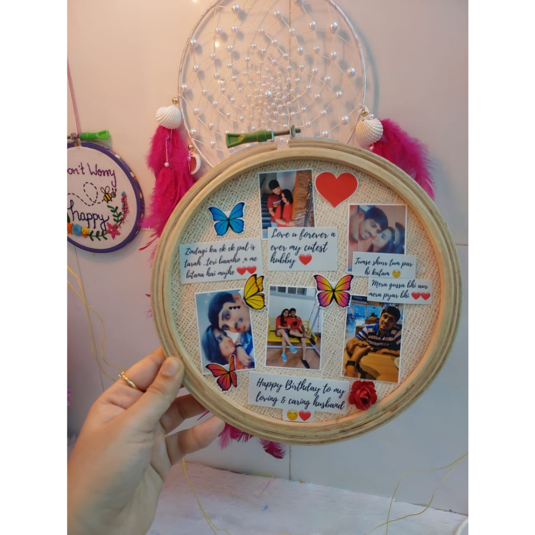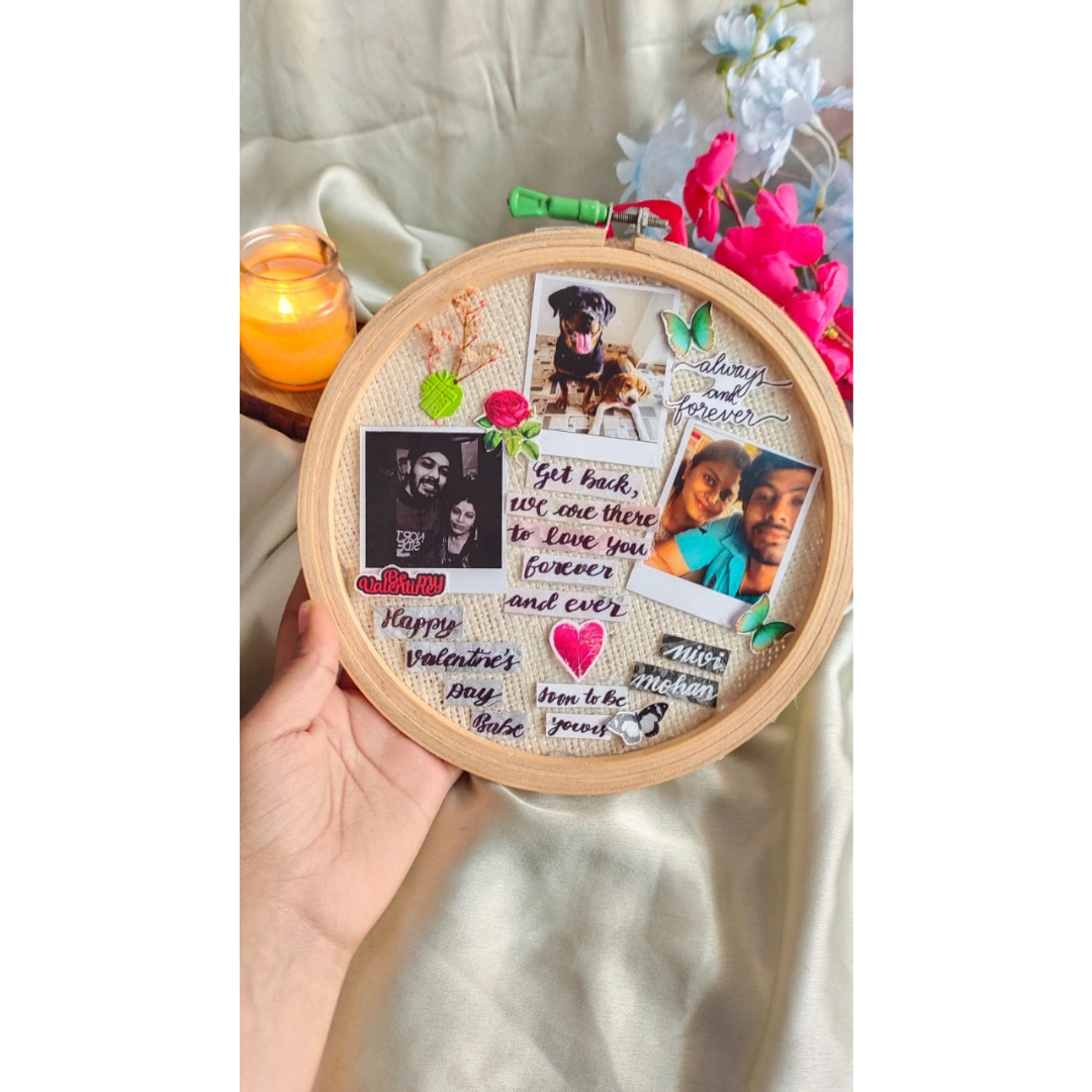 Looking for a price-worthy product for small occasions? The wait ends here with a hoop frame. It carries customized pictures, texts & stickers designed in a hoop. It looks cute to present to someone. Order yours now.