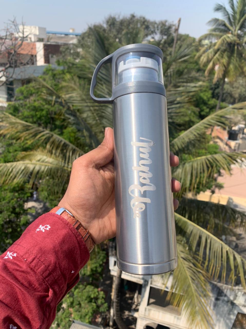 Want to have something unique and significant? Buy this hot and cold flask at a cost-effective range. This special flask is designed in a way that its cap can be used as a small cup for pouring and having water. It is a must-buy product and can be customized with your name.