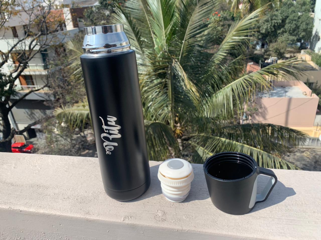 A double-layer vacuum-insulated flask is now your way. It's special feature is it can keep the water hot and cold for up to 6-8 hours. The designer look of personalized with a name makes it attractive and worth buying.