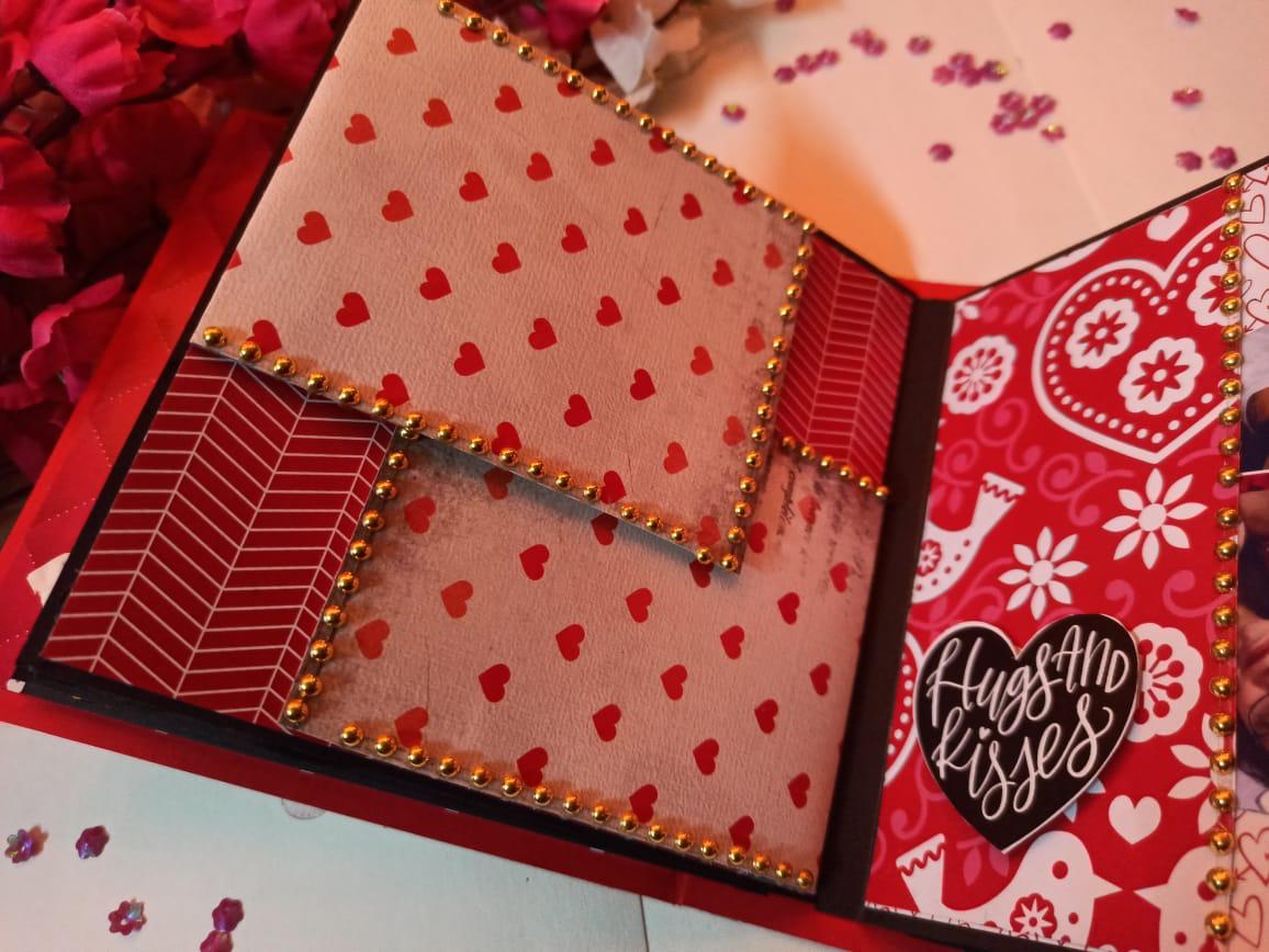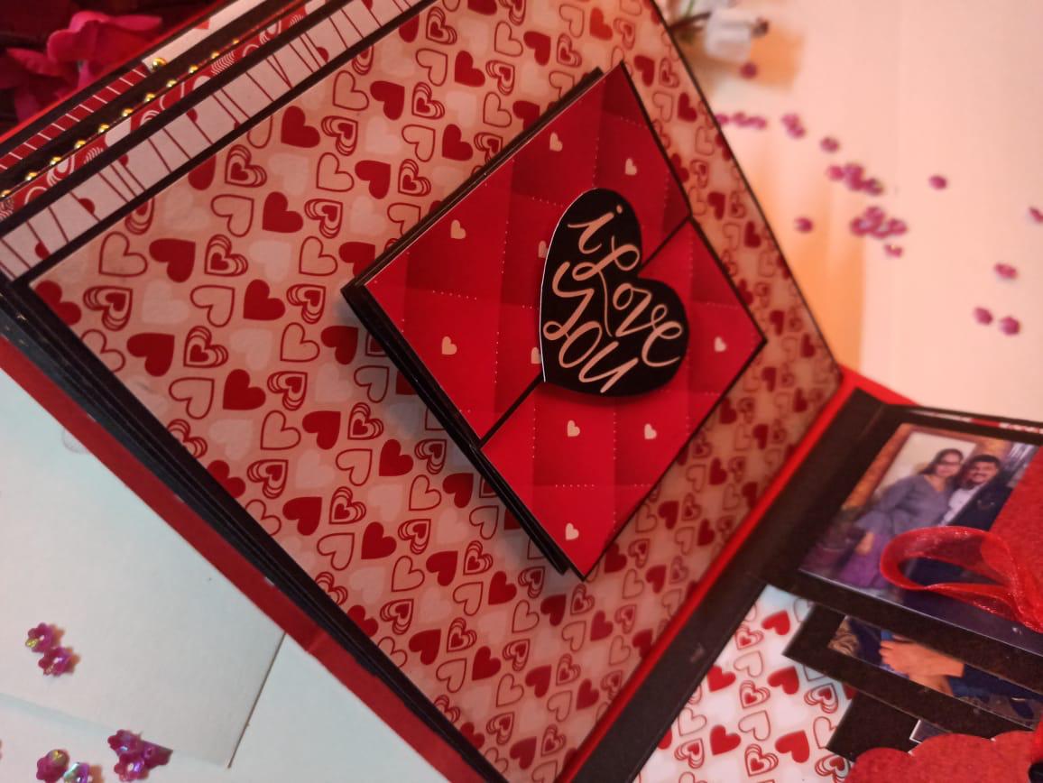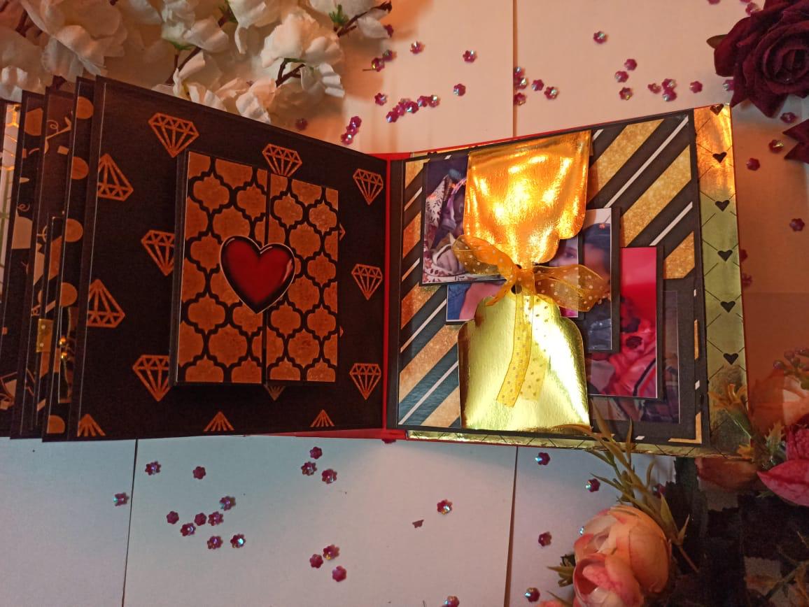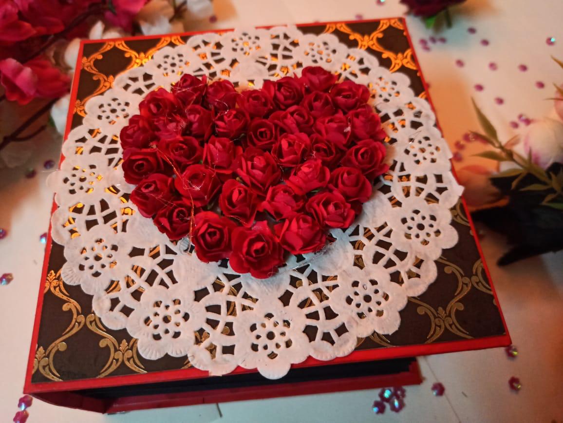 Every love story is beautiful but make yours's favorite with a special rose heart album. It is crafted with pictures, stickers, and themed designs decorated with love and is a collection of heart-touching moments, enclosed in a golden rose-printed box.