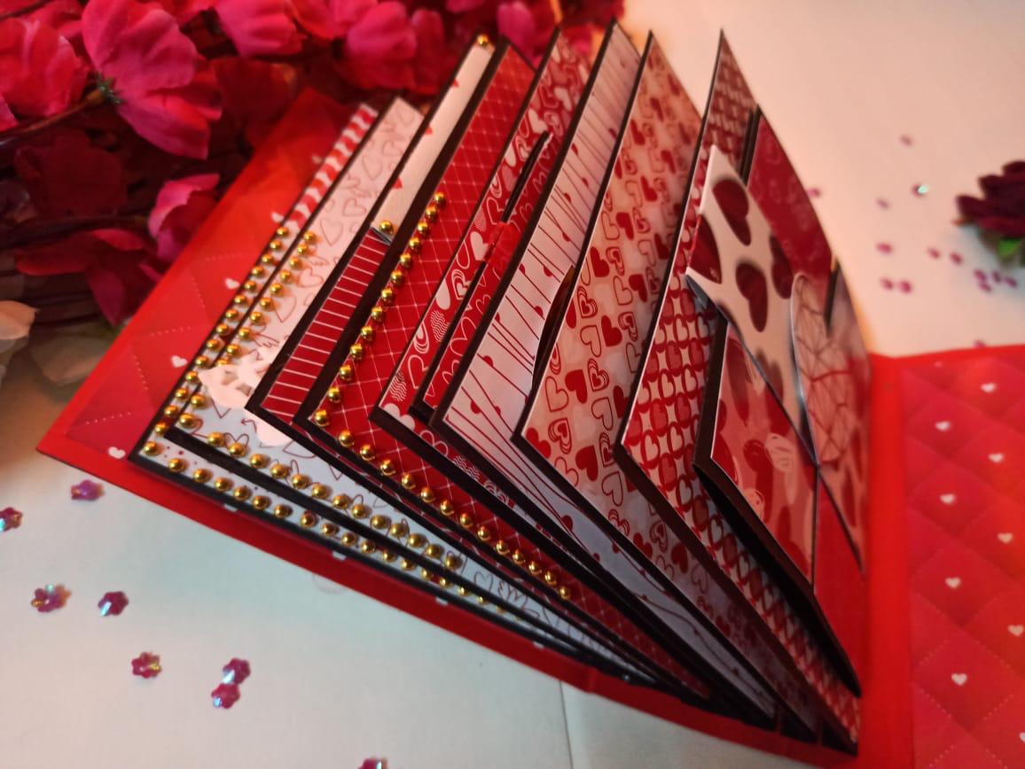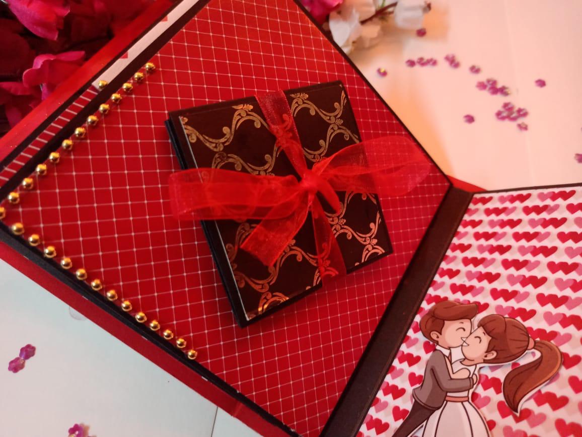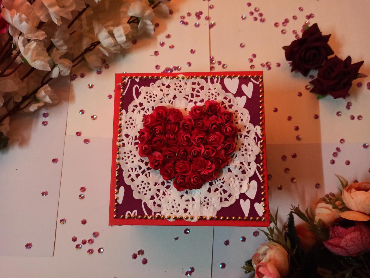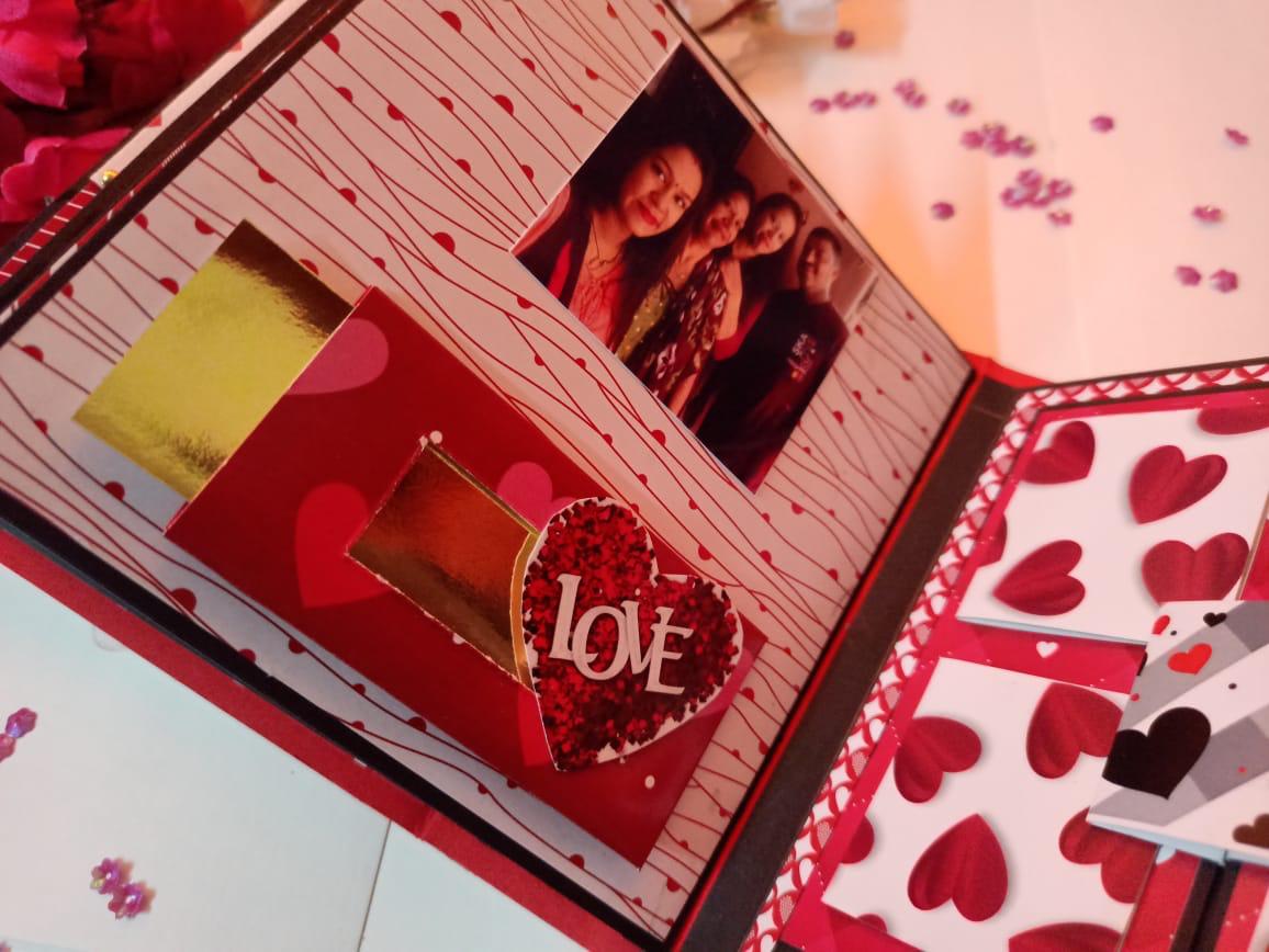 Every love story is beautiful but make yours's favorite with a special rose heart album. It is crafted with pictures, stickers, and themed designs decorated with love and is a collection of heart-touching moments, enclosed in a golden rose-printed box.
