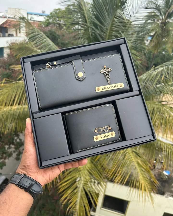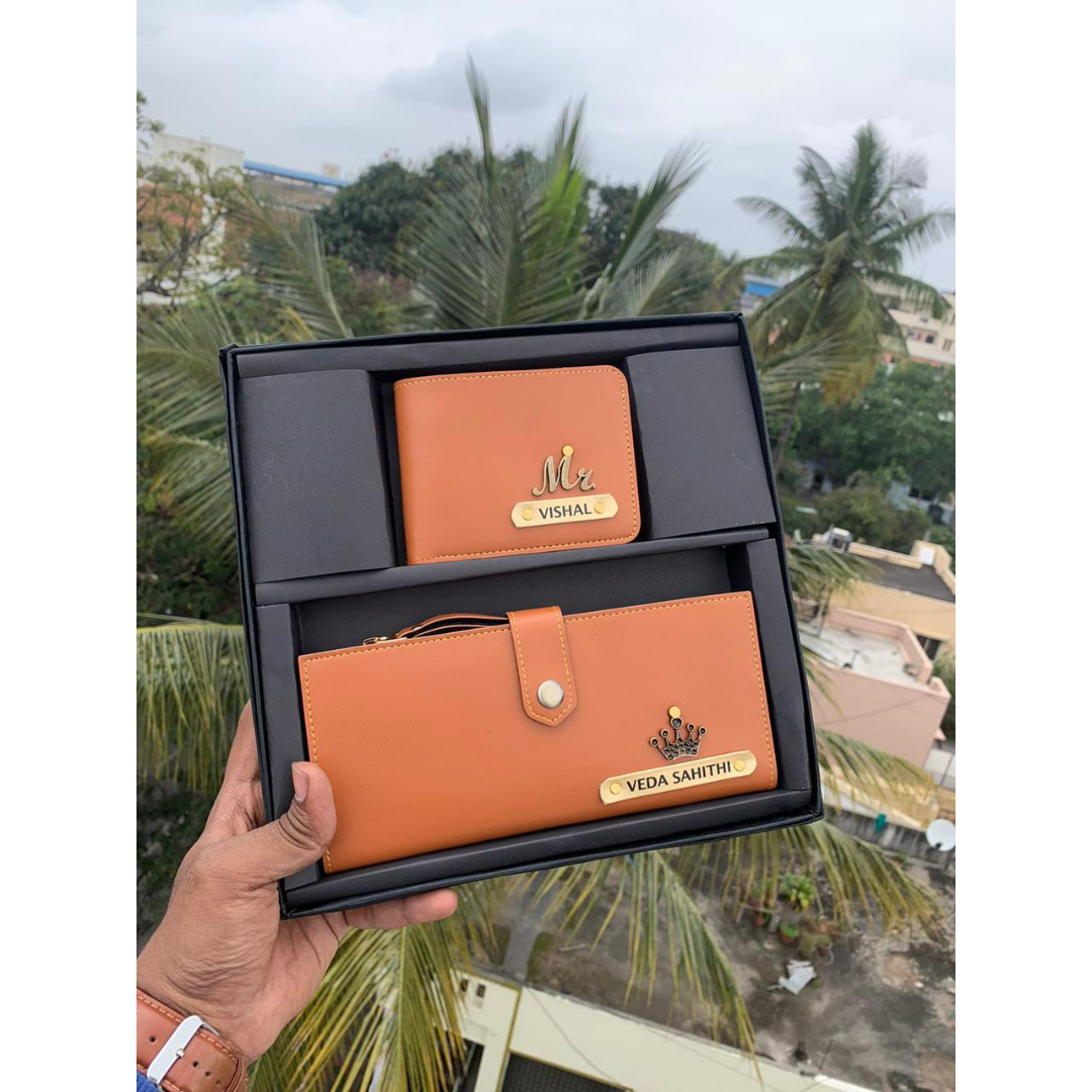 We believe that sharing happiness with someone special doubles its value. Gifting ready-made products is common, but customizations make it unique. This leather combo includes 1 men's wallet 1.0 & 1 ladies' wallet 3.0 with a customizable name on it, A wide variety of colors are available & it comes with a premium box too.