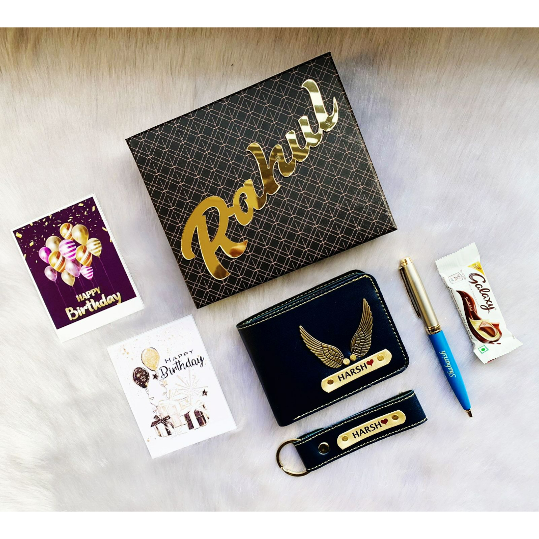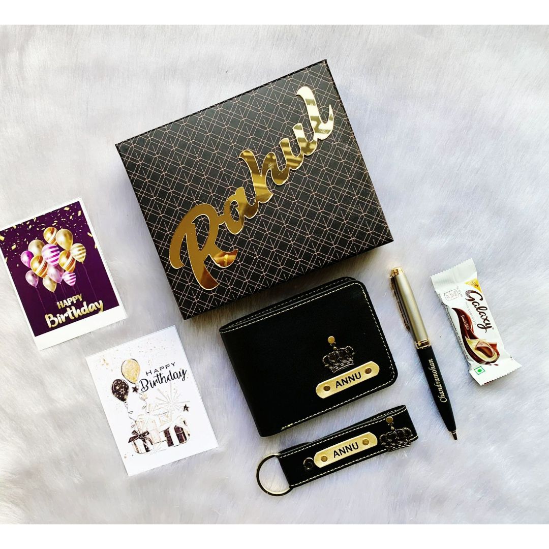 This festive season try something unique with a mini combo inclusive of 1designer fancy box, 1acrylic name on the box, 1 customized men's wallet, 1customized keychain, 1 classy company pen, 1 delicious Galaxy chocolate, and 2 ready-to-gift cards. All these fluffy items come packed in 1 single box and are a price-worthy gift for your dear and loved ones.