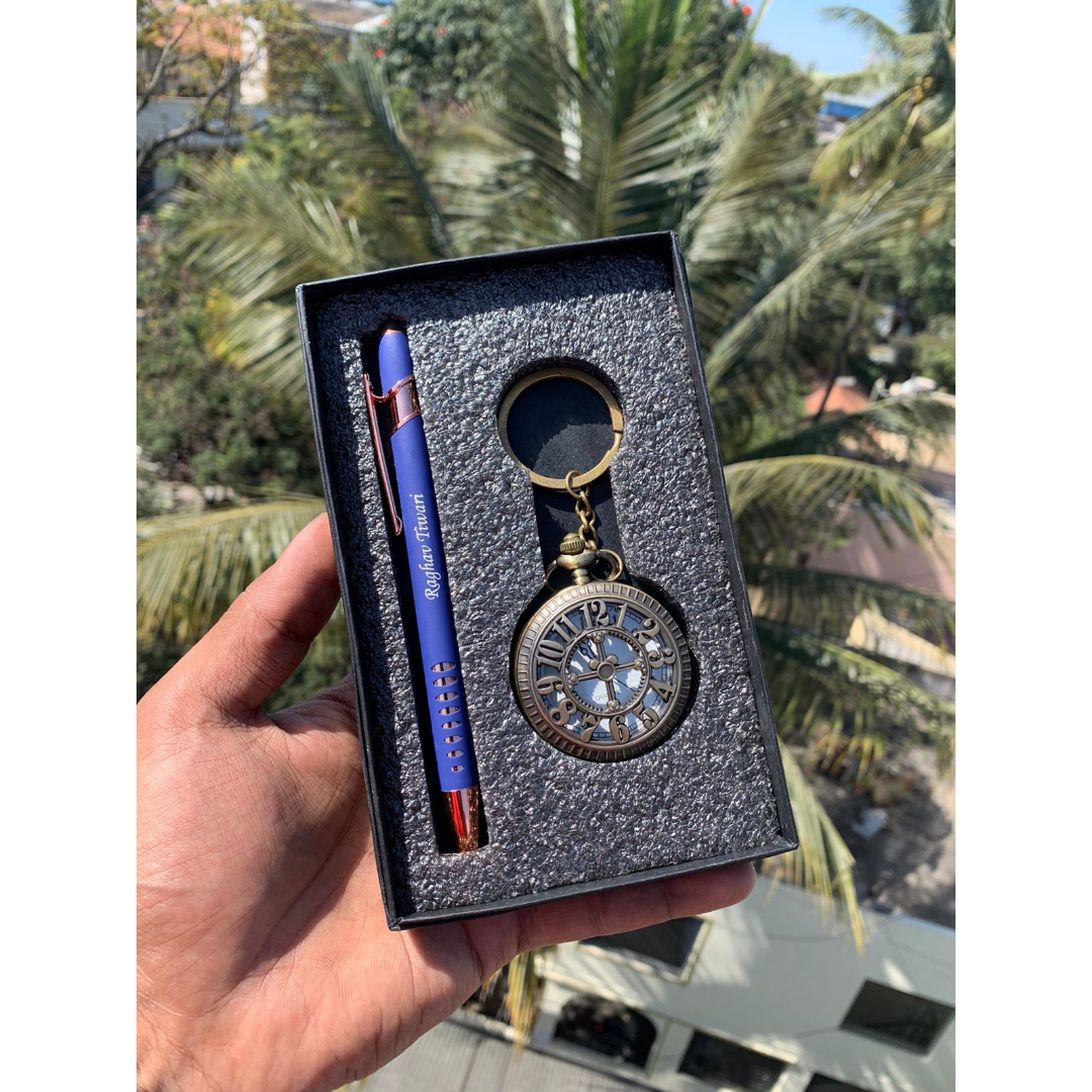 Old is gold this phrase can be expressed vibrantly with an antique watch and pen combo. It includes 1 random design antique watch and 1 customized Pen from a given pen chart. It is nicely packed in a box as it is suitable for gifting purposes.