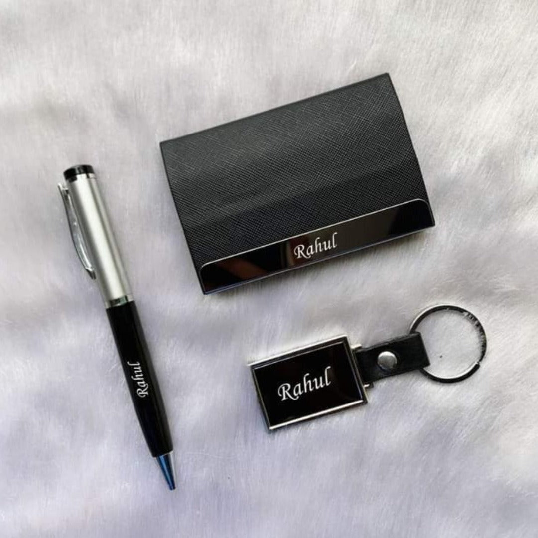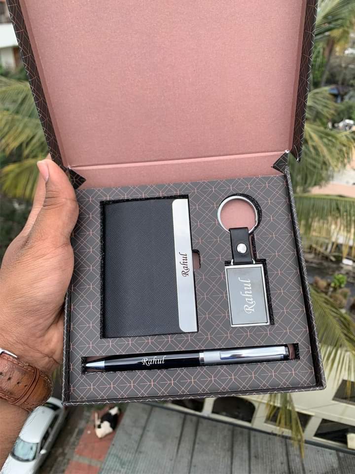 Looking for a gift that is equally ethical and valuable too? We bring you our new collection of corporate combos. Inclusive of 1 card holder, 1 metal keychain, 1 stylus pen along with a common name engraved on all three products. It comes in a premium box and looks radiant for gifting purposes.