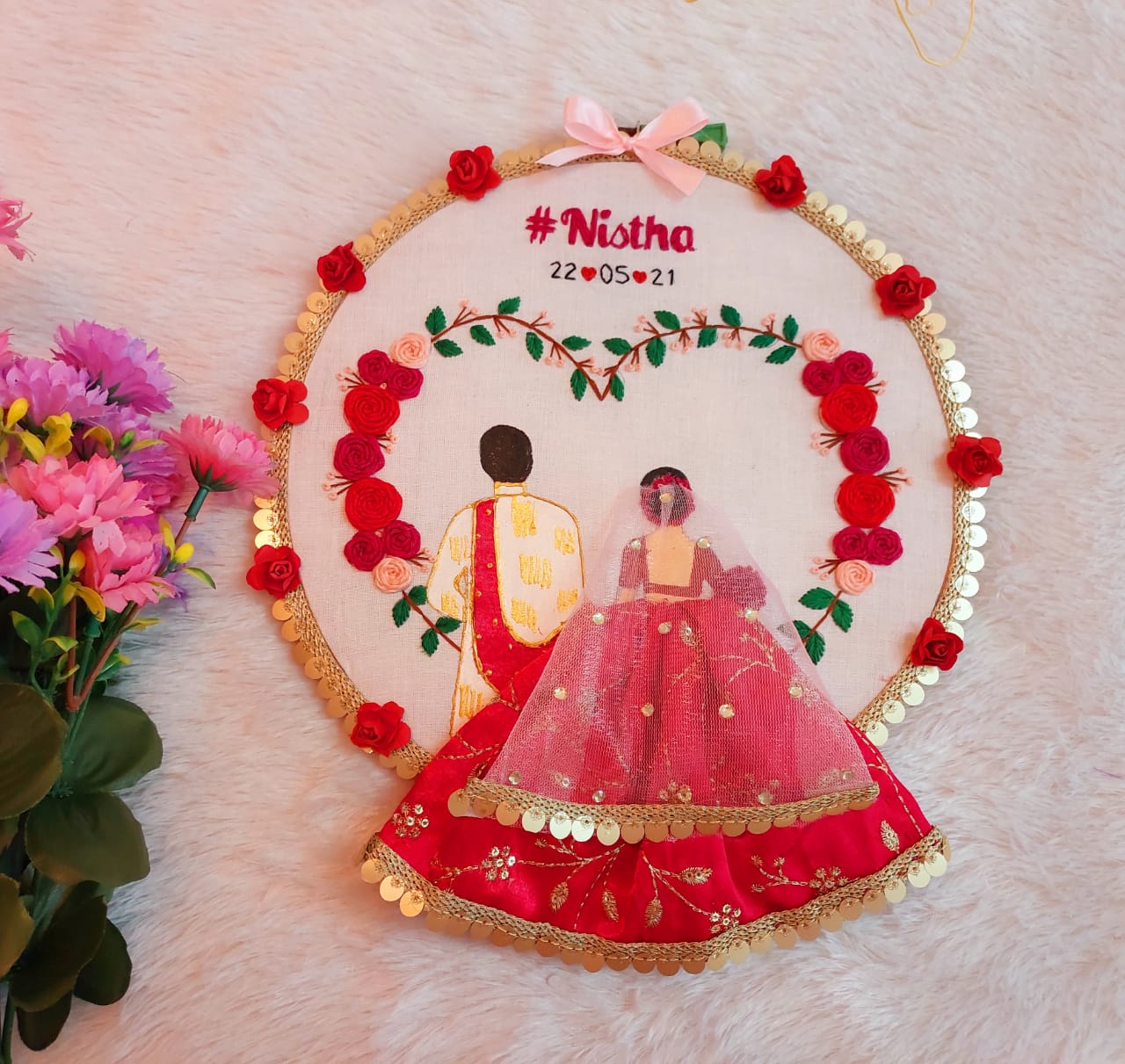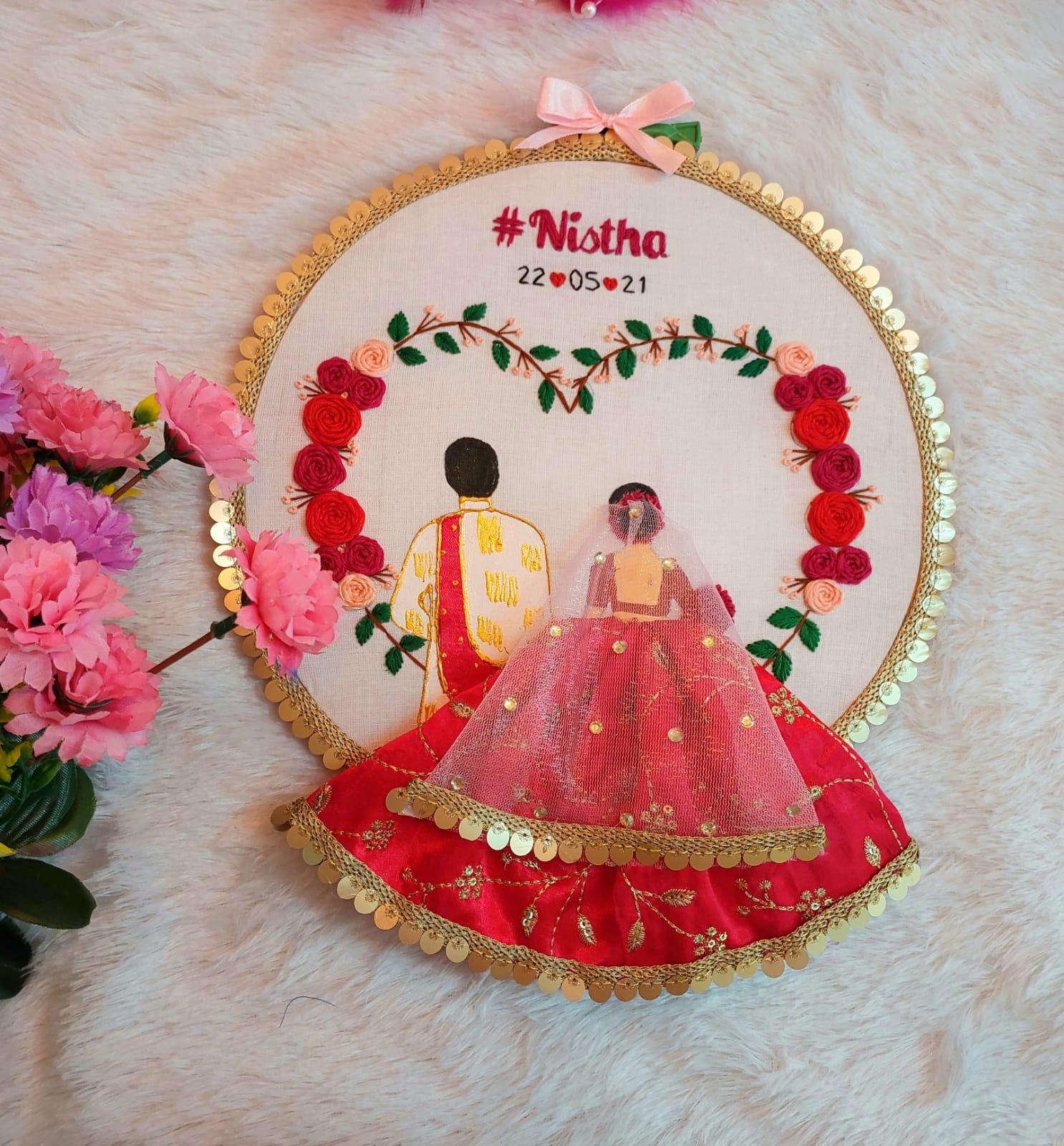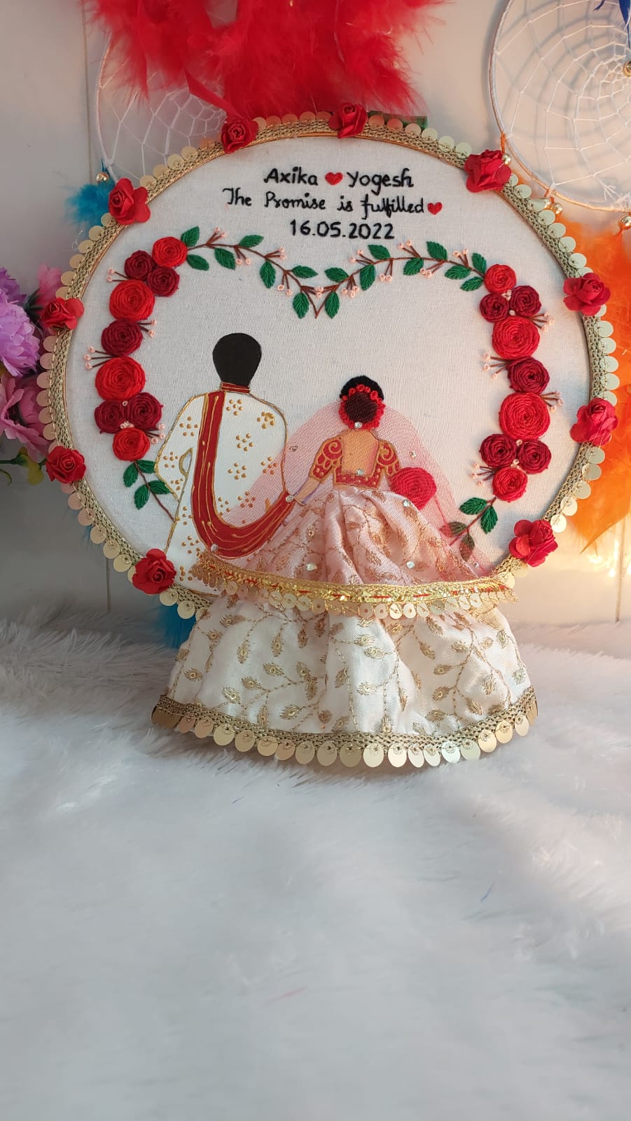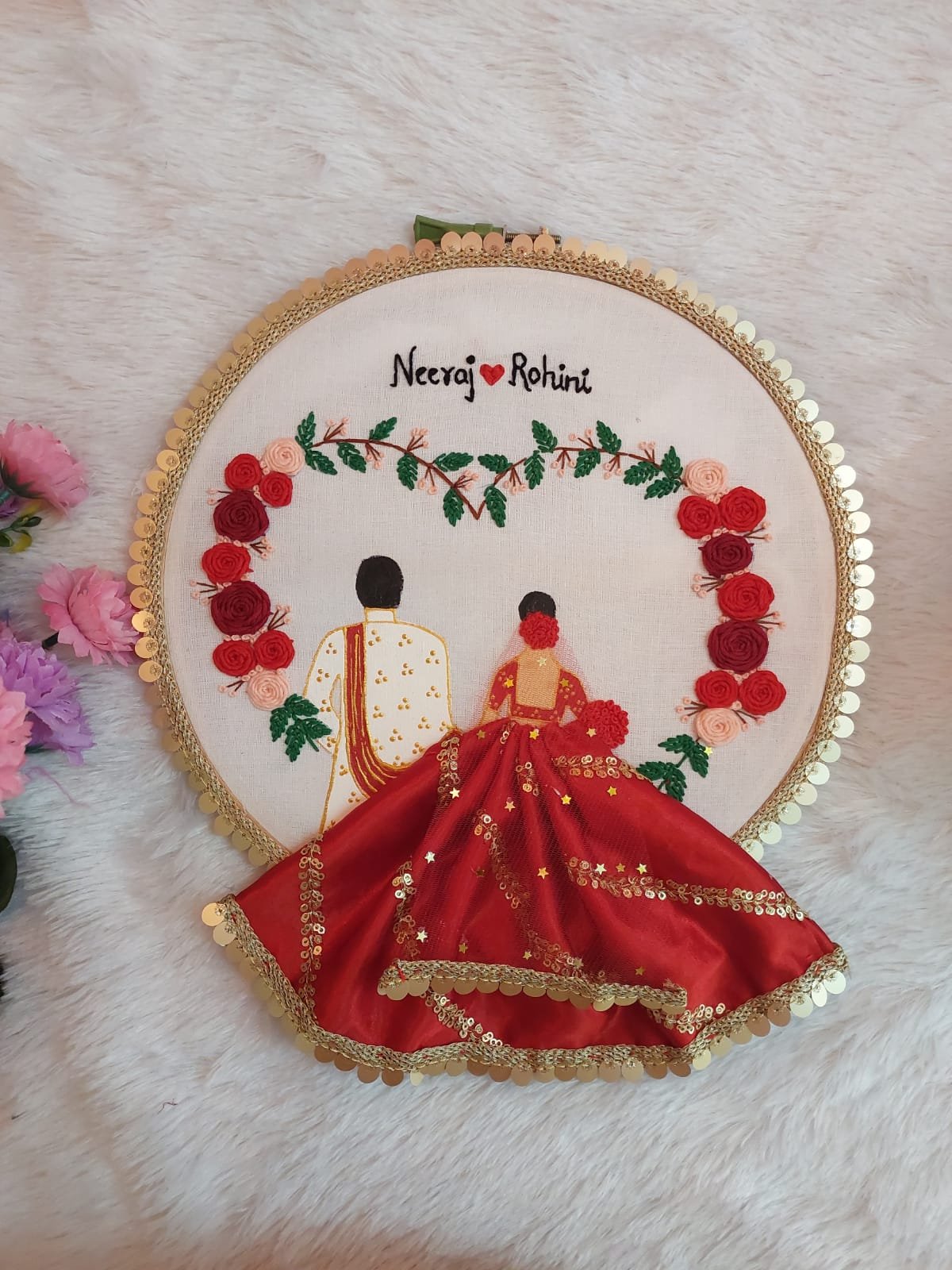 This Couple Dress Embroidery Hoop With A Heart 2.0 is perfect for gifting. Its delicate embroidery and heart design make it a thoughtful and unique gift for loved ones. Show your appreciation with this beautiful and heartfelt present.