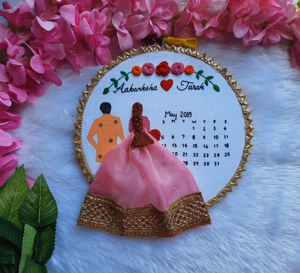 - Embroidery color will be made in contrast to the bride & groom dress color combination.