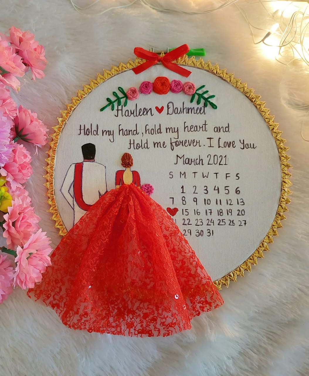 This Couple Embroidery Hoop 7.0 is perfect for gifting. Its delicate embroidery and heavy dress design make it a thoughtful and unique gift for loved ones. Show your appreciation with this beautiful and heartfelt present.