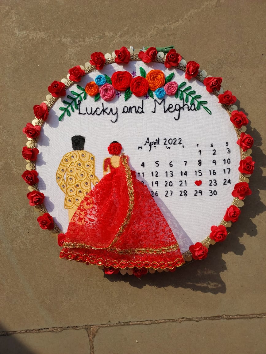 - Embroidery color will be made in contrast to the bride & groom dress color combination.