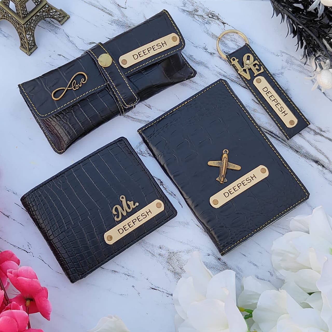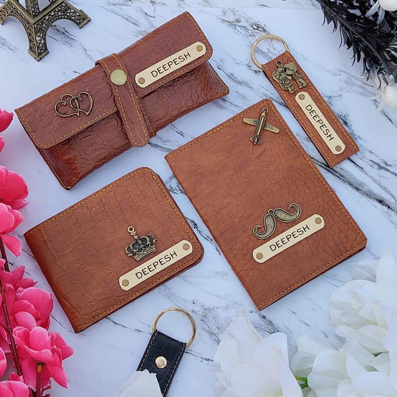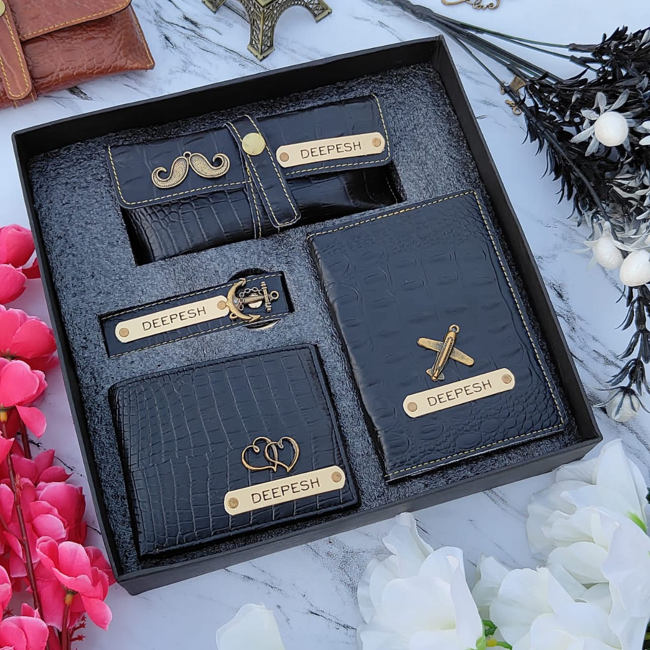 One of the latest trending items is a croc leather 4-piece combo. It includes 1 high-quality imported wallet, 1 pair of eyewear, 1 passport holder, and 1 keychain with a hook. All these items come enclosed in a premium box and are available in 9 iconic colors.