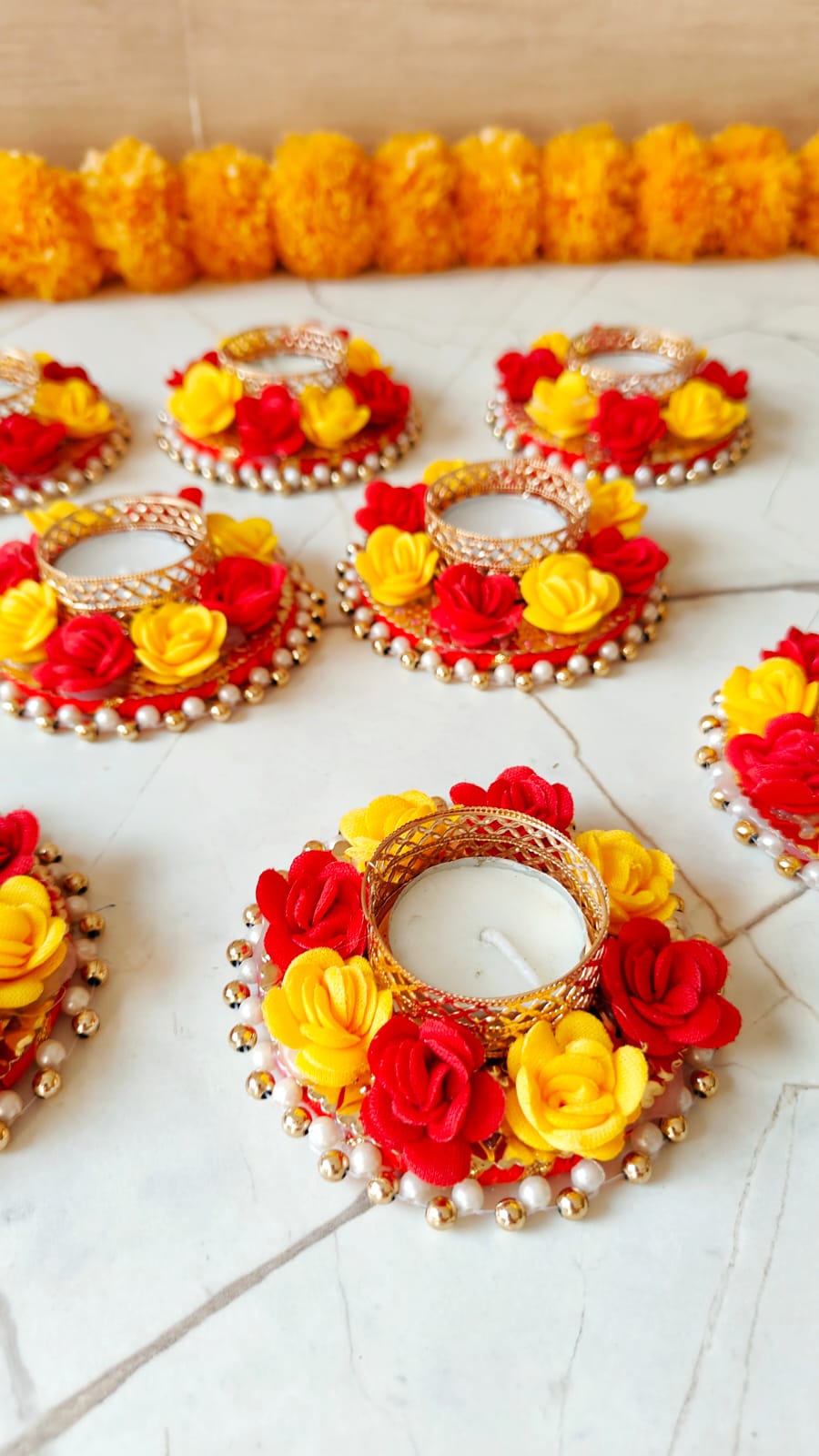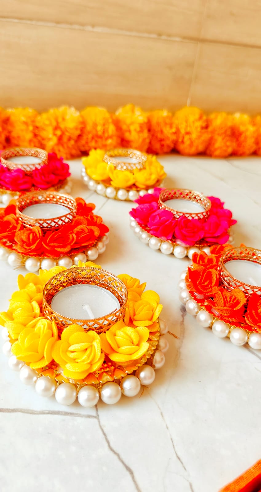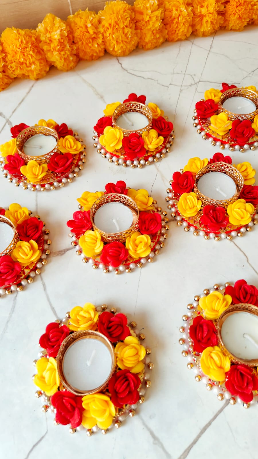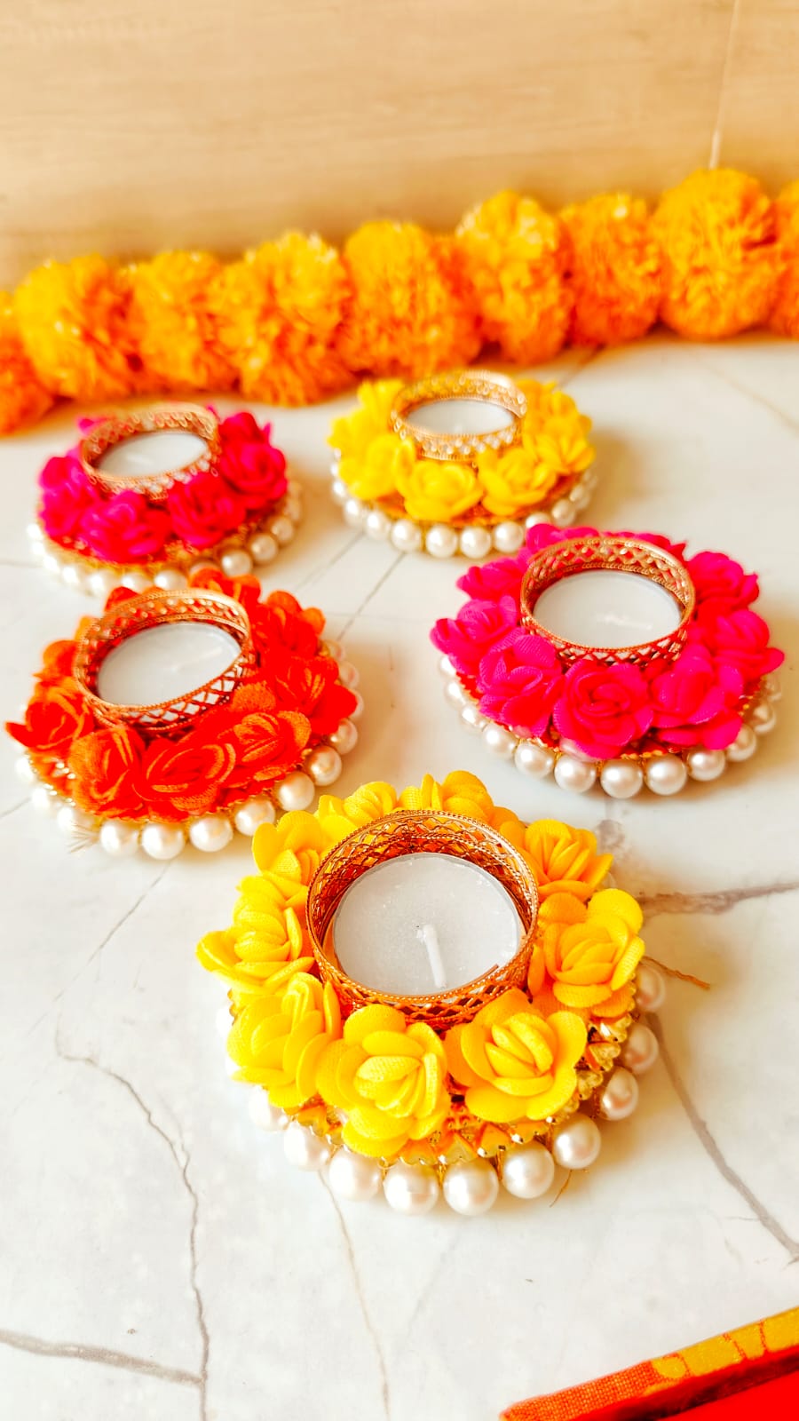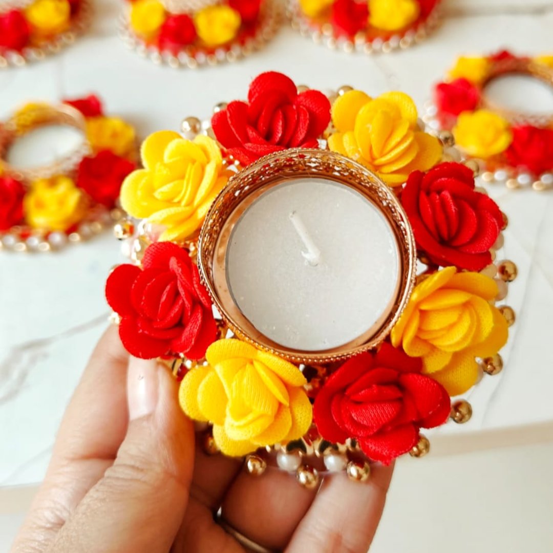 Add a touch of beauty to your Diwali celebrations with the Designer Candle 1.0, beautifully decorated with foam roses. These delicate, lifelike foam roses create a soft and romantic aesthetic, enhancing the charm of this premium candle.