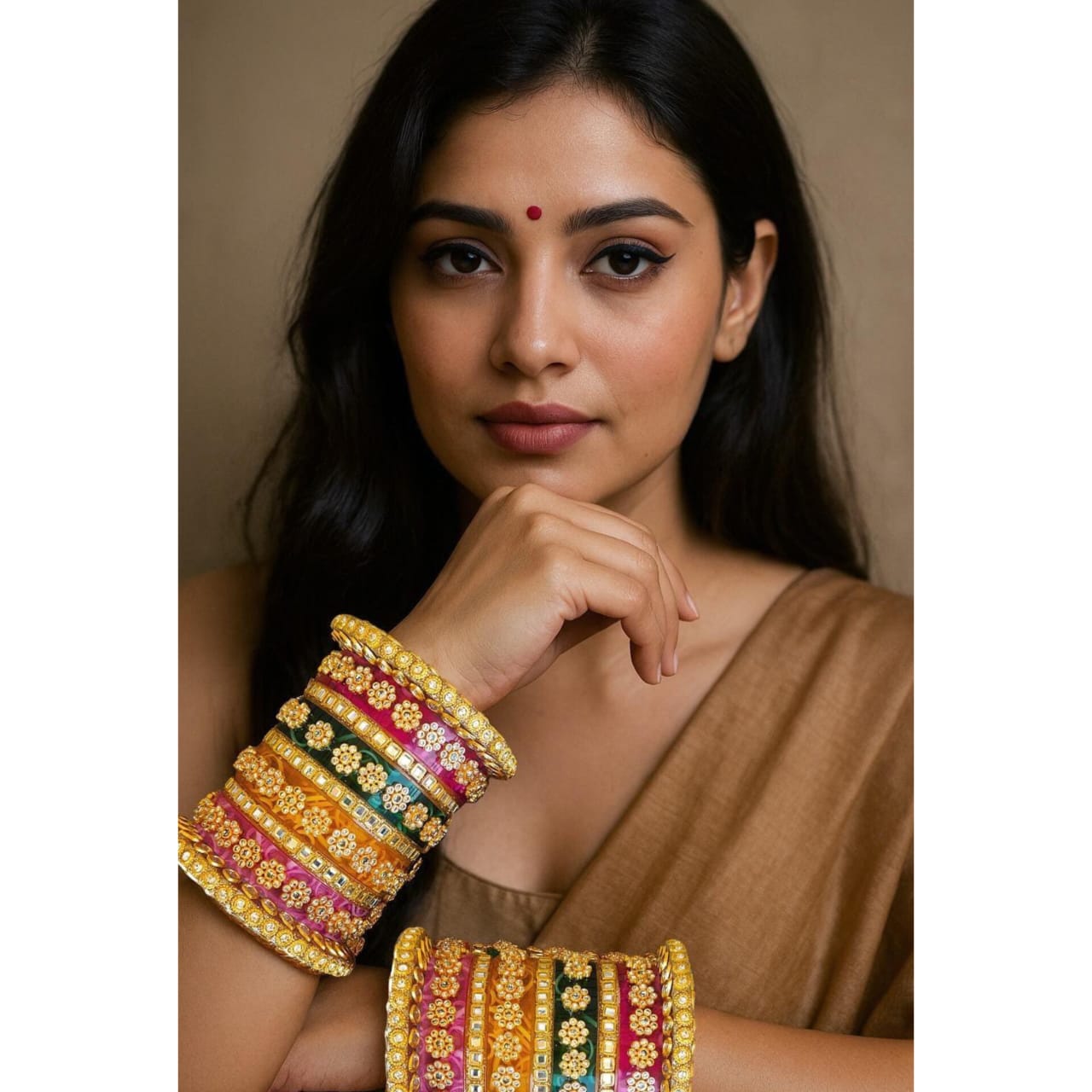 Enhance your festive elegance with our Designer Chooda 10.0, crafted with intricate patterns, premium materials, and vibrant hues. Perfect for Karwachauth, this exquisite set complements your traditional attire while adding a regal and graceful charm to your celebration.