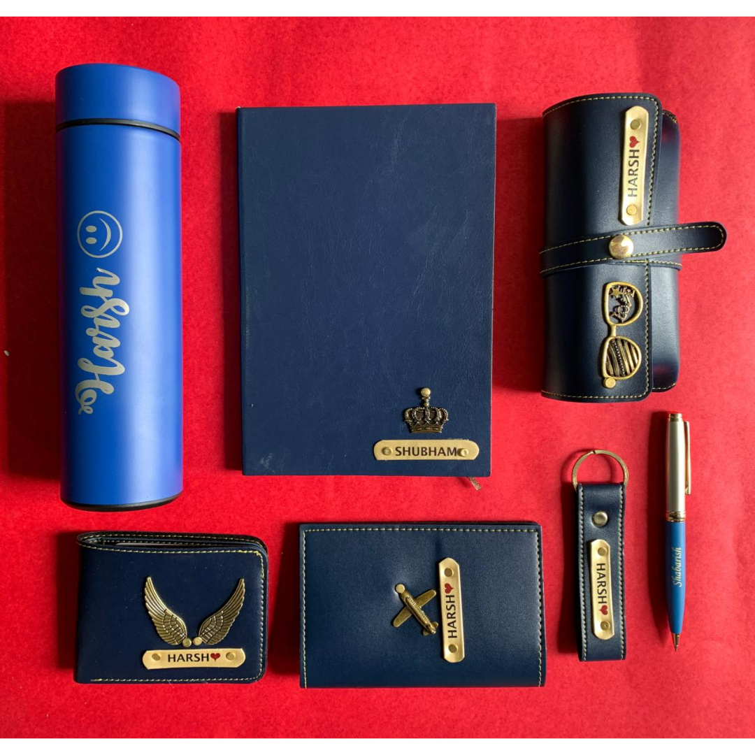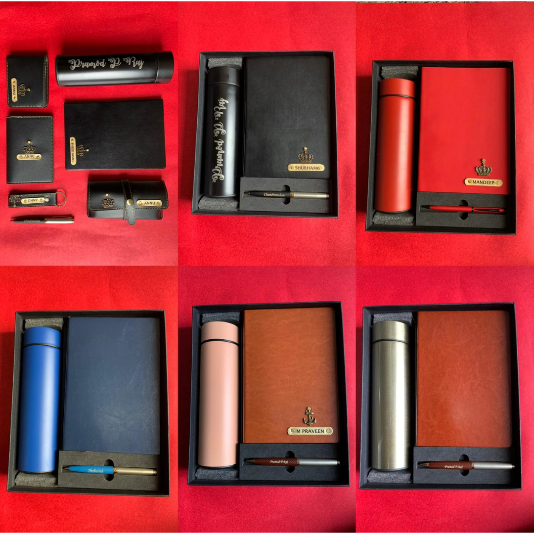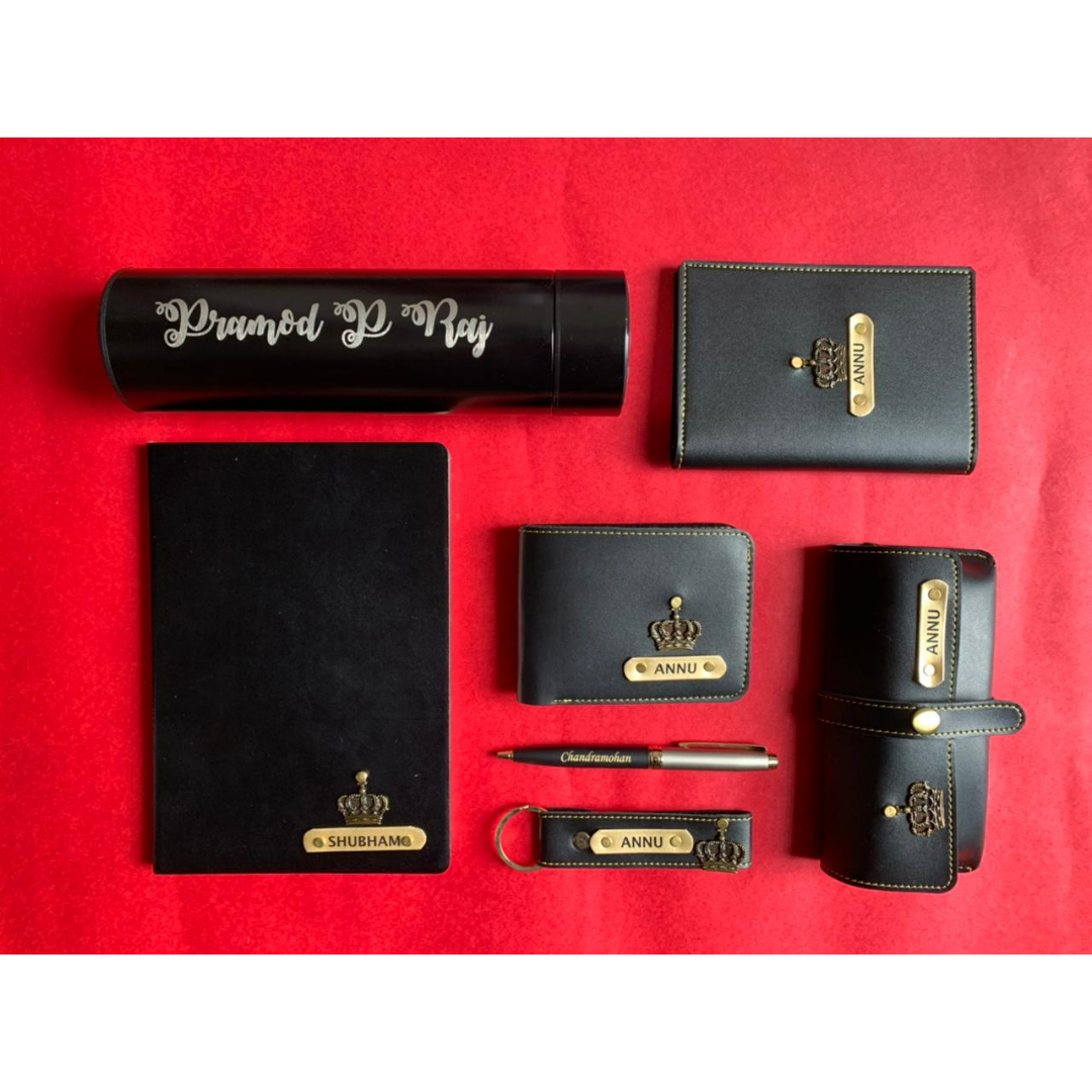 Looking for a value-for-money product?? Your search ends here with this dairy combo. It includes 1 charm diary, 1 men's leather wallet, 1 passport cover, 1 keychain, 1 eyewear case, 1 classic pen, and 1 LED Flask 3.0 compact in a premium box. It is available in 5 attractive colors.
