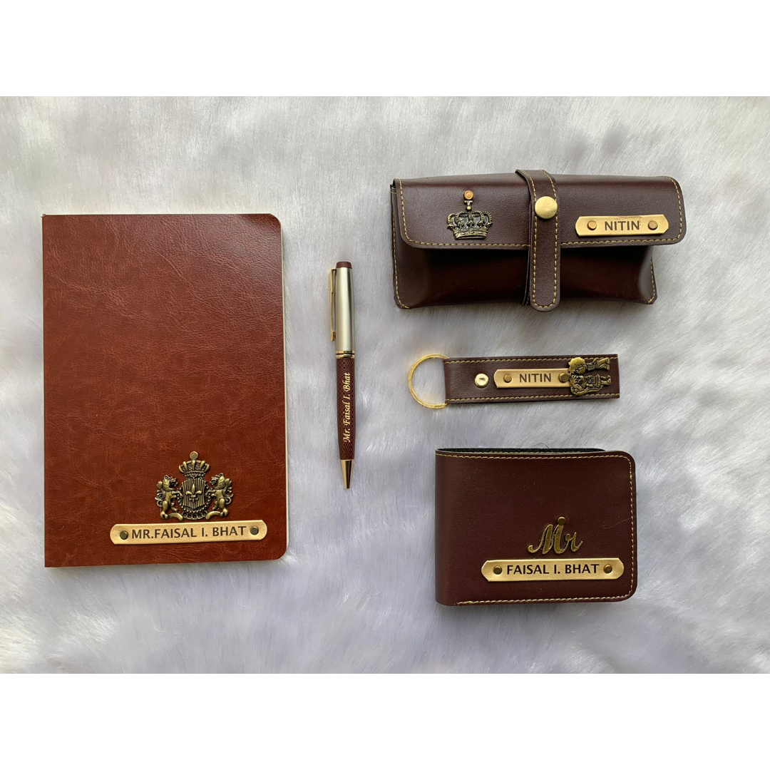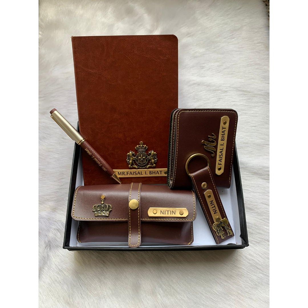 This festive season we bring you an amazing diary combo. It includes a trendy A5 size charm diary, 1 men's wallet, 1 keychain, 1 eyewear case, and 1 metal pen (choose from the given chart). It is available in 6 iconic colors and comes packed in a single box.