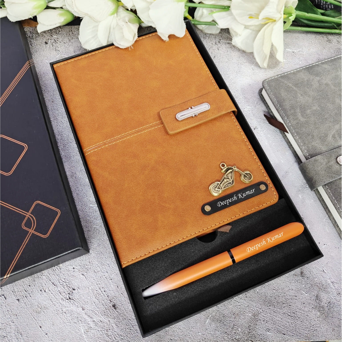 A perfect combination of price-worthy and convenient this diary includes 1 name tag and 1 charm and is made of leather. It is available in many different colors. It also consists of a pen with a customized name on it.
