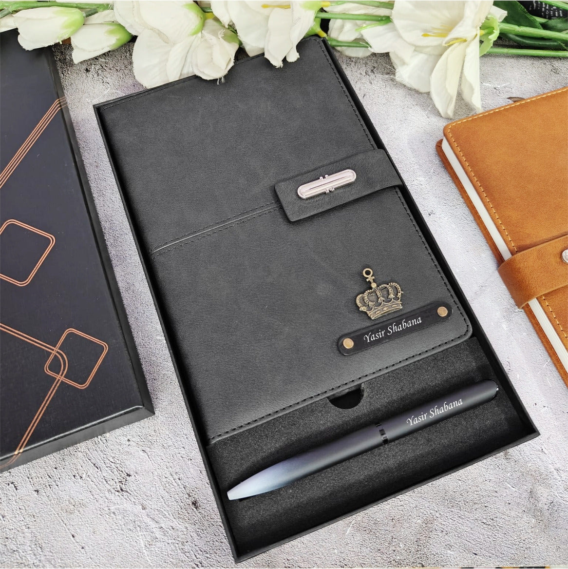 Scope of one name customized on the diary & pen, and charm customized on the diary.