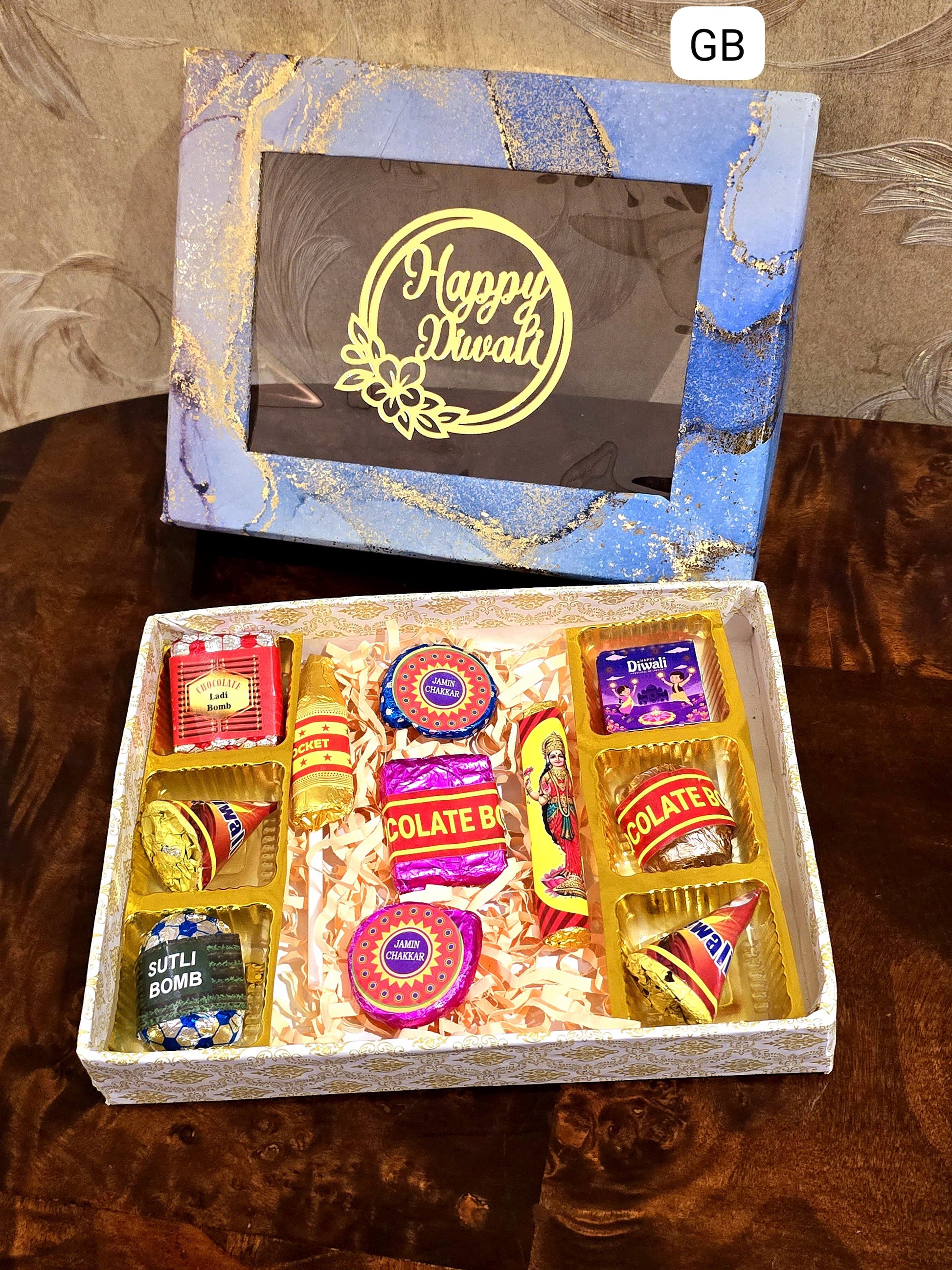 Premium hard case boxes, heavy quality with happy diwali acrylic, random design accordingly to availability.