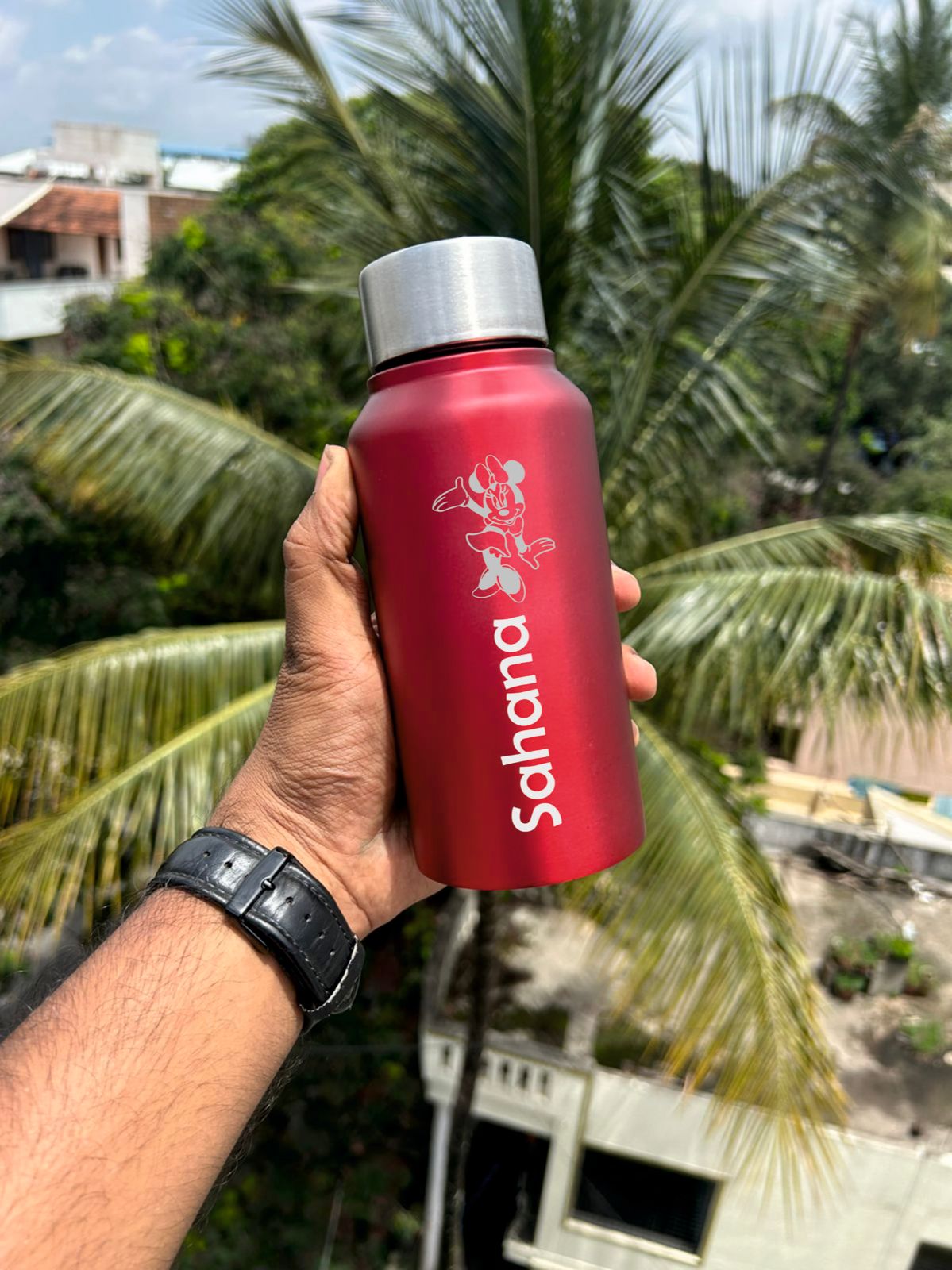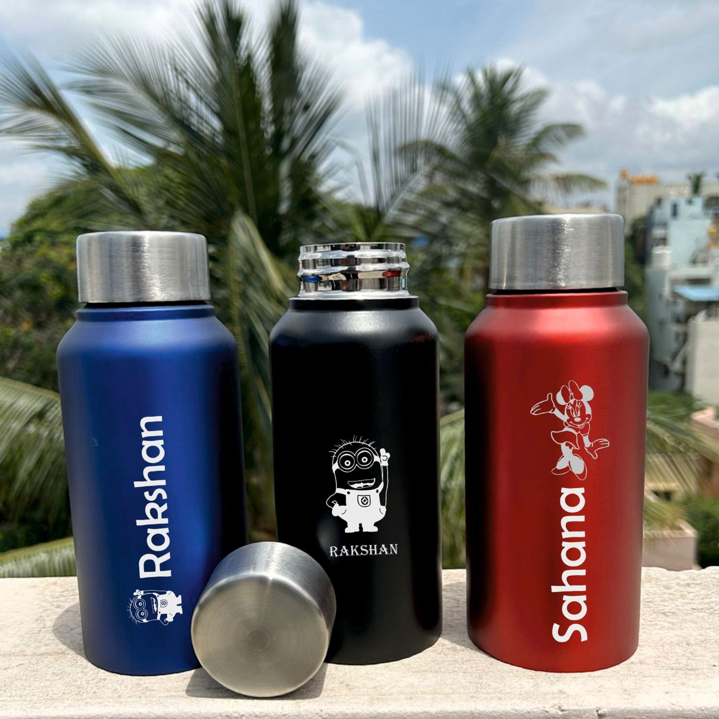 Still, using those old plastic bottles for school purposes? Give a new exciting bottle to your kids at a pocket-friendly rate. This bottle is designed with child's favorite cartoon character & looks very cute. Customize it with any name.