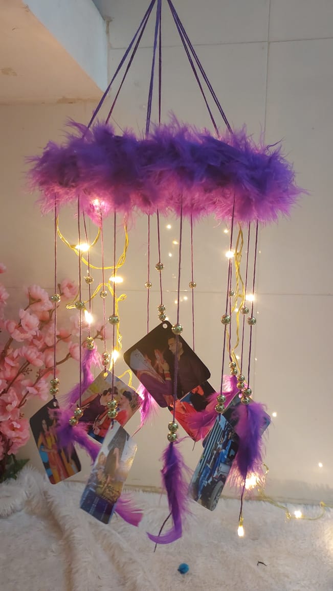 Wind chimes bring positive energy and good luck. Enlighten your home with a personalized wind chime. It carries beautiful pictures, beads, feathers, and fairy lights and is handcrafted with our expertise. Available in two variations, with 12 pictures, 24 pictures and in various bright colors. Order now! And give your home a glamorous touch.