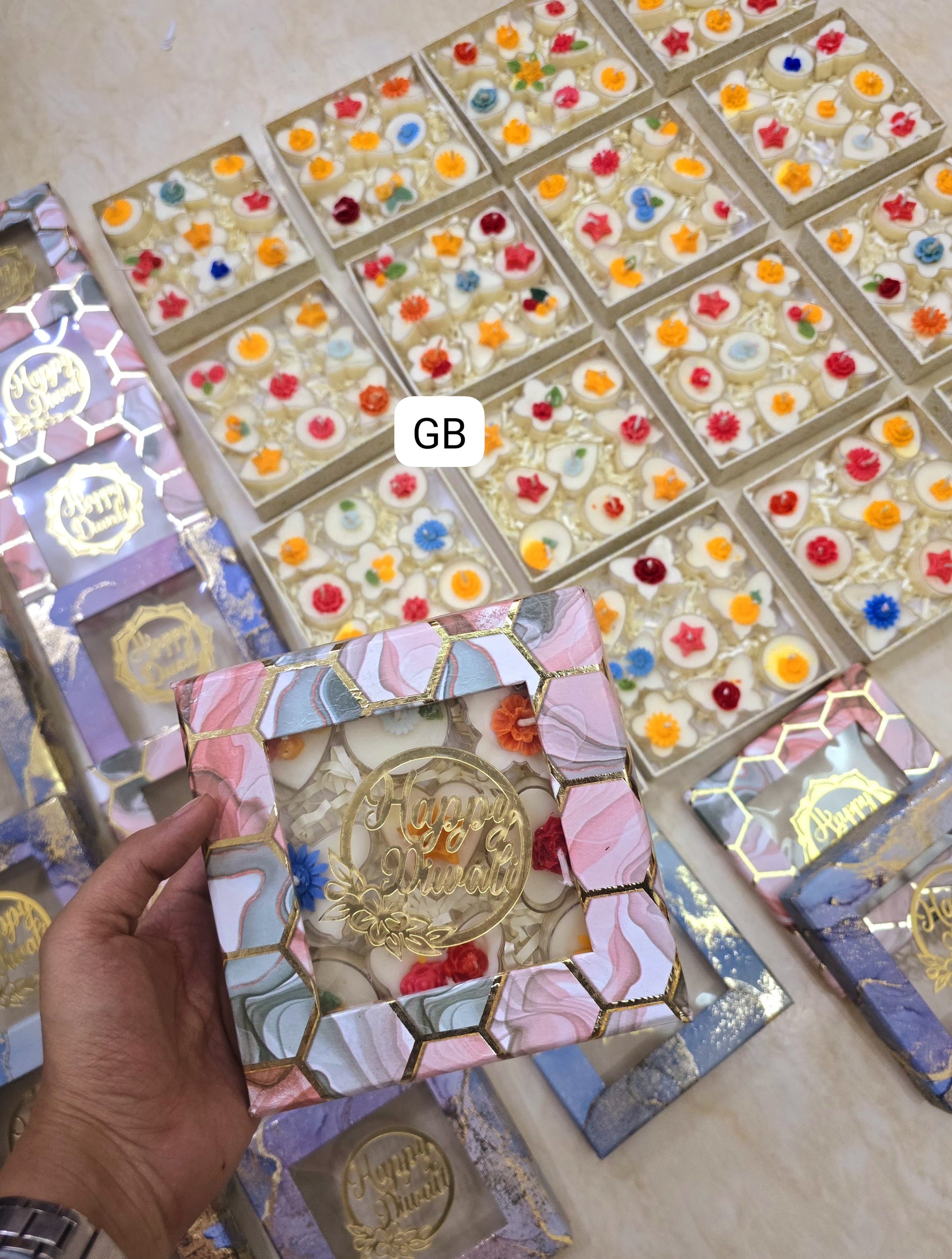 Premium hard case boxes, heavy quality with happy diwali acrylic, random design accordingly to availability.