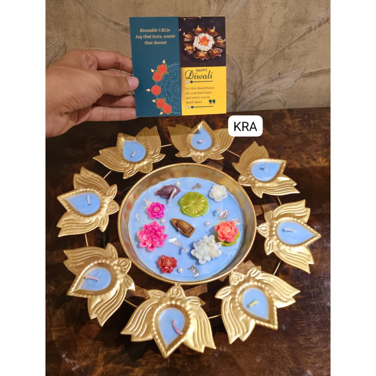 Bring serenity and festive charm to your home with this Fragranced Lotus Pond Urli, featuring scented candles and floral accents. A perfect Diwali décor piece to create a warm, glowing, and aromatic festive ambiance.