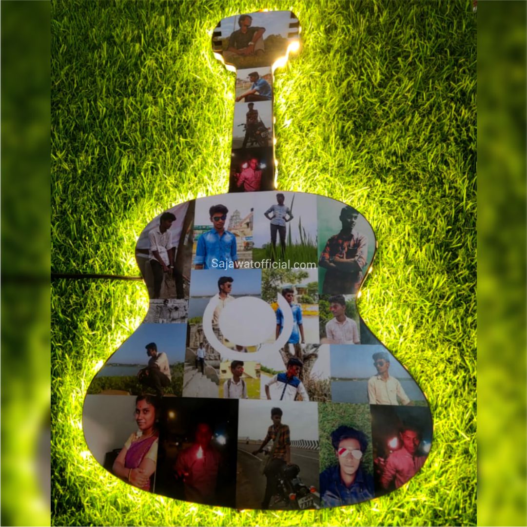 Unbox happiness with these trendy Guitar Framed LED Lights. It is a collage of pictures on a guitar shaped frame with led lights around it. It is made up of fine quality wood & has a long-lasting validity. Appease your loved ones with this super cool piece of uniqueness.