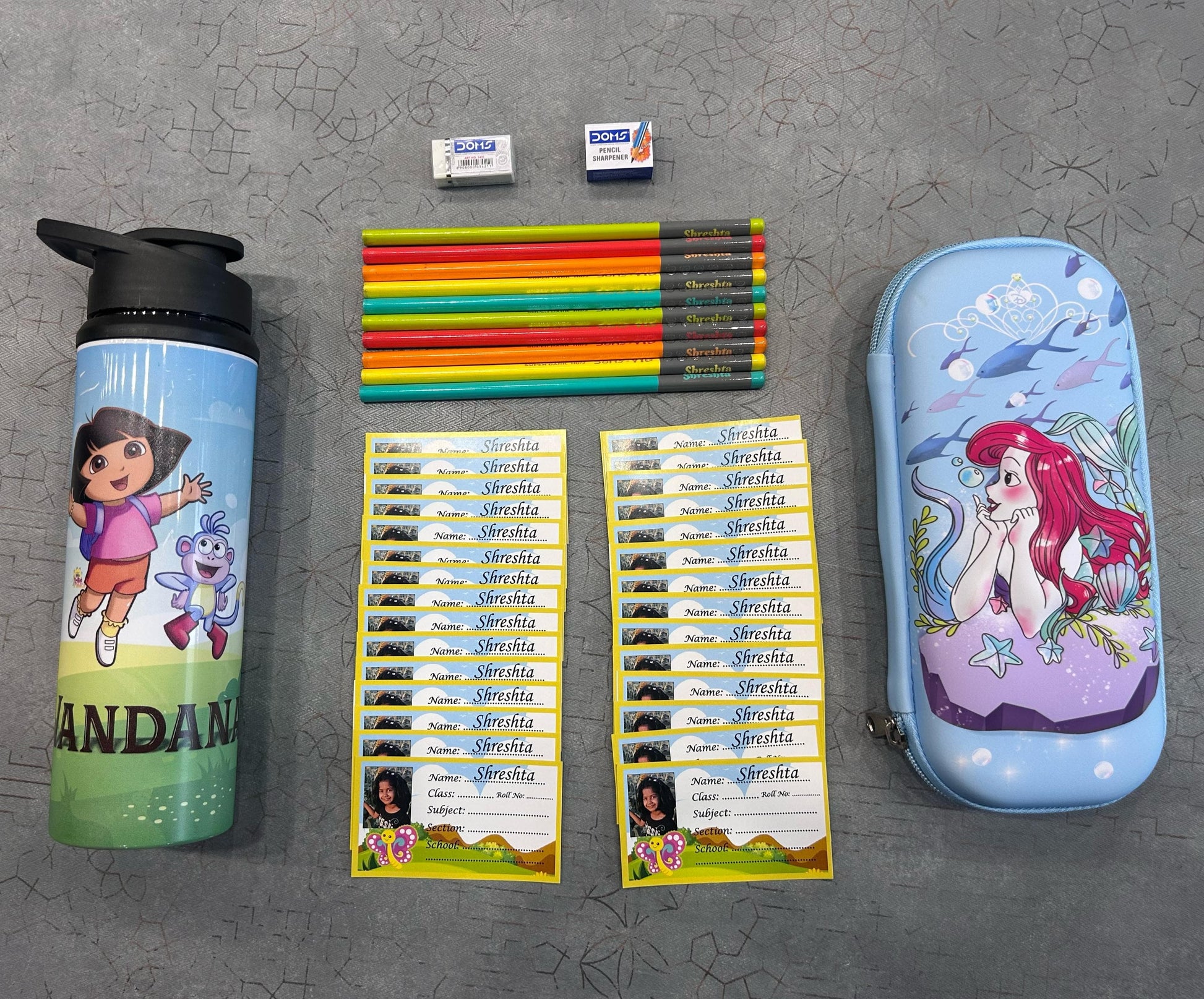 Kids Combo 4.0 is the perfect personalized school essentials set designed to delight and motivate young learners. Ideal as a birthday gift or school-starter pack, Kids Combo 4.0 blends utility with a touch of fun and personal charm.