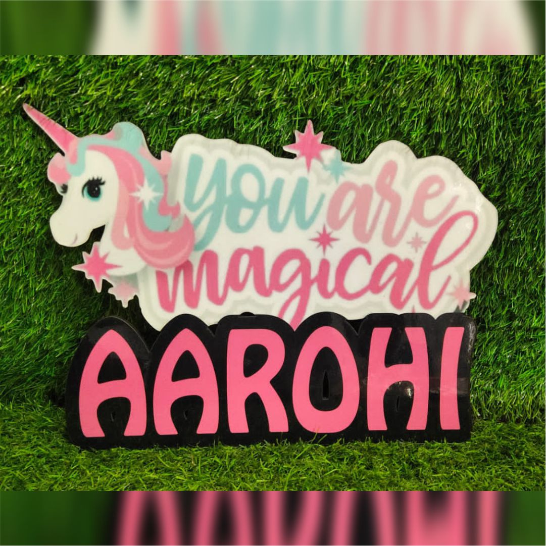 Create the greatest birthday gifts for your kiddies special Theme Parties with this Name prop. Customize it with different font of the name and favorite cartoon character like Unicorn, Chota- Bheem etc.
