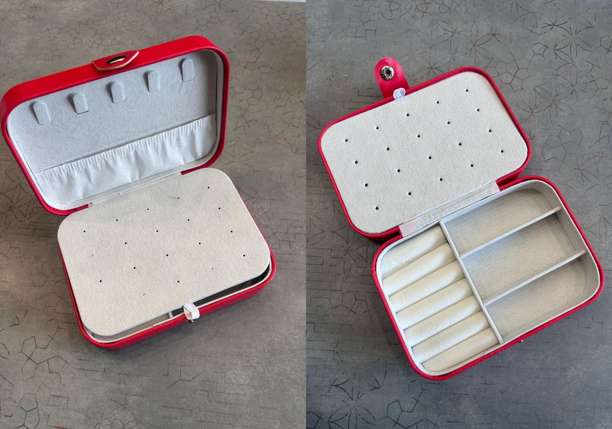 The Mega Jewelry Box is a compact yet spacious storage solution designed to keep your jewelry organized and protected in style. It features a smooth, leather-like exterior with a secure button closure. Its rectangular shape makes it perfect for travel or everyday use, easily fitting into bags or drawers.