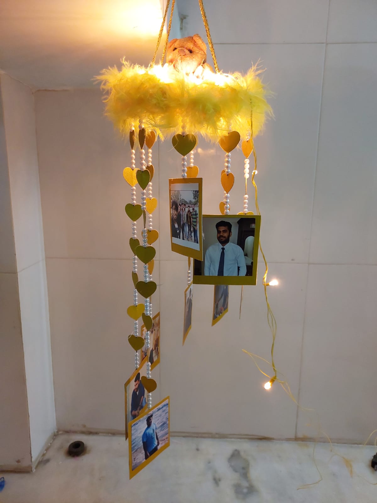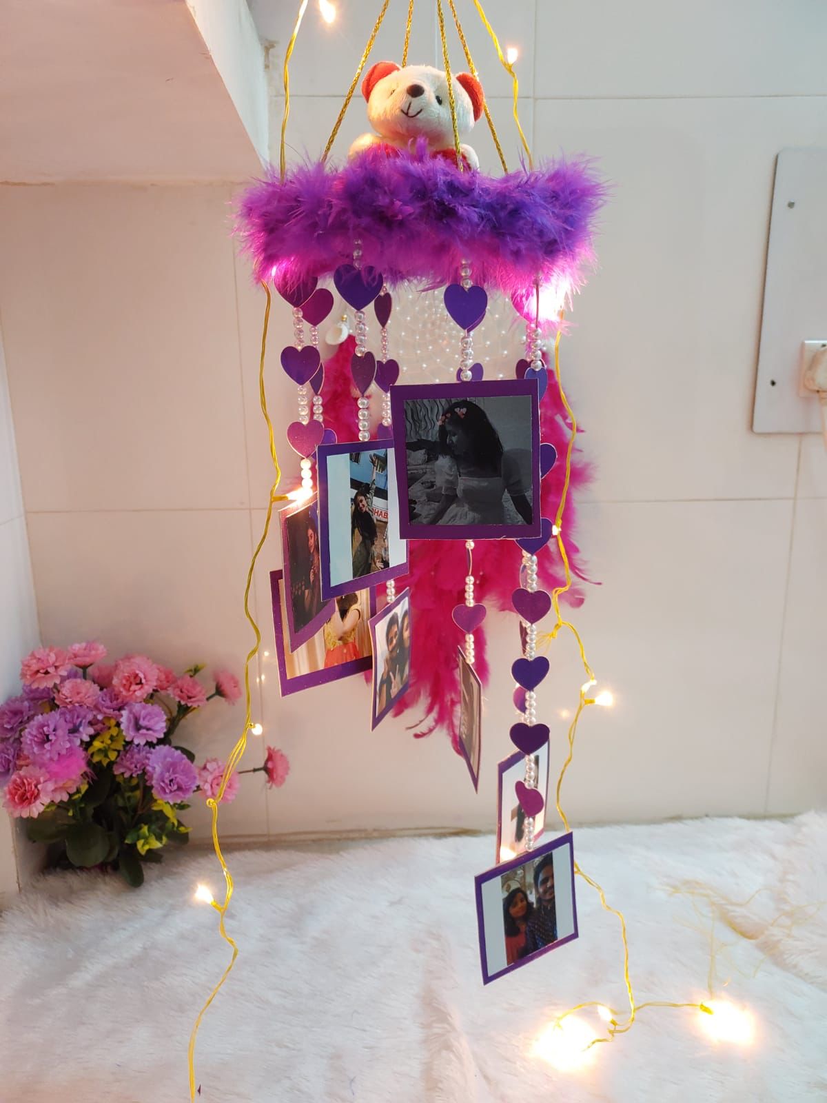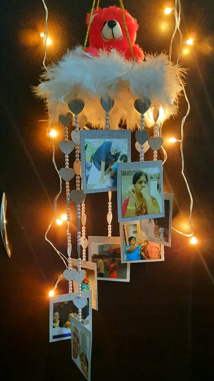 Windchime is known for bringing good luck. Make your festive season graceful with our exclusive Pearl Teddy Windchime. This amazing piece of art is handmade by our expert artists. It can be customized with 16 images and a teddy on the top.
