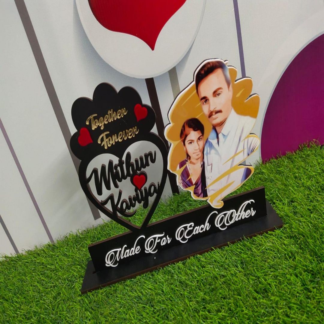 An evergreen gift for your home and office tables too. The product- photo standy with one heart can be customized with pictures and text. The cut-out of the picture is digitally printed and gives a matte finish.