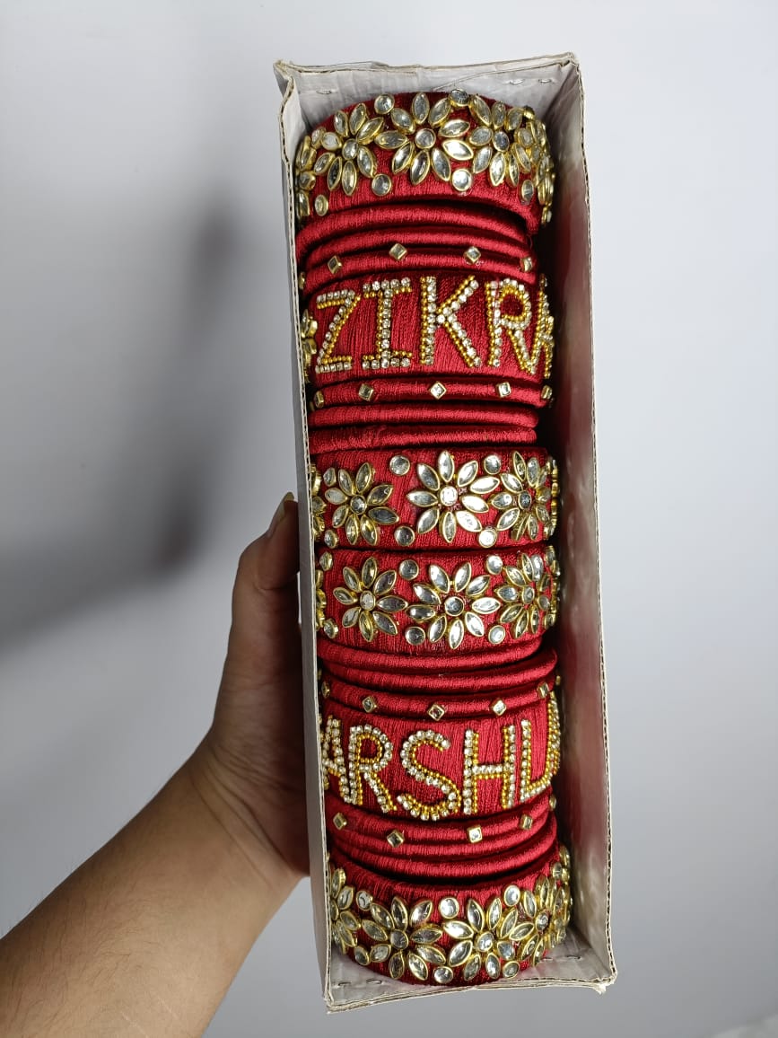 Customized bangles enhance the beauty of the already stunning Indian brides, as well as the beauty of their wedding photographs. If you want to wear customized bangles to your wedding, we can make it for you.