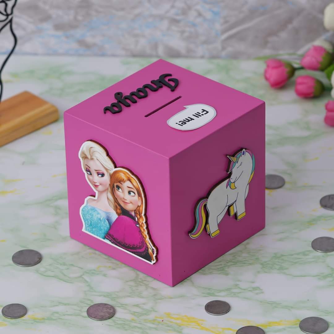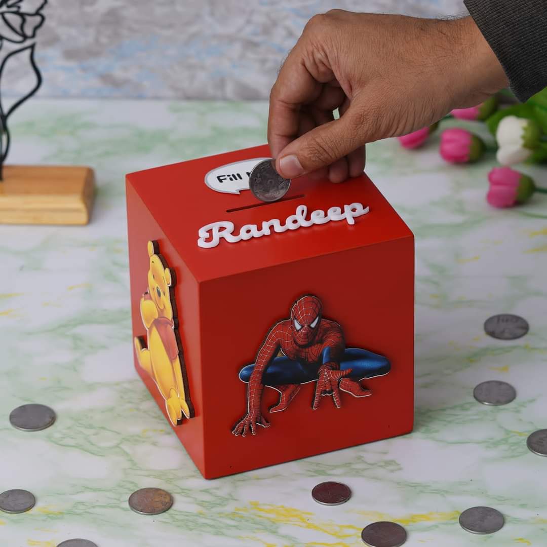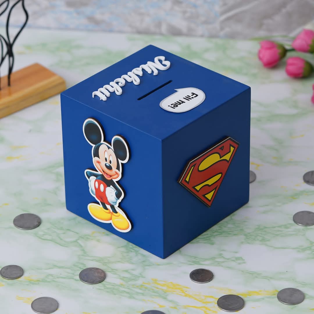 Teach your children the value of money with this amazing Piggy Bank. You can personalize it with your favorite cartoon character. and your name.