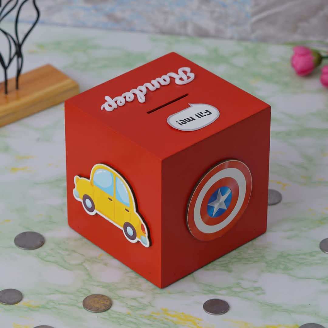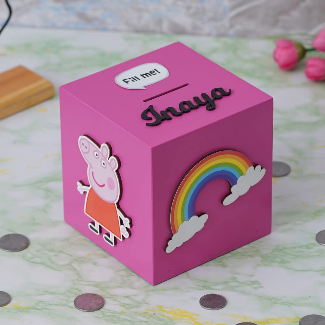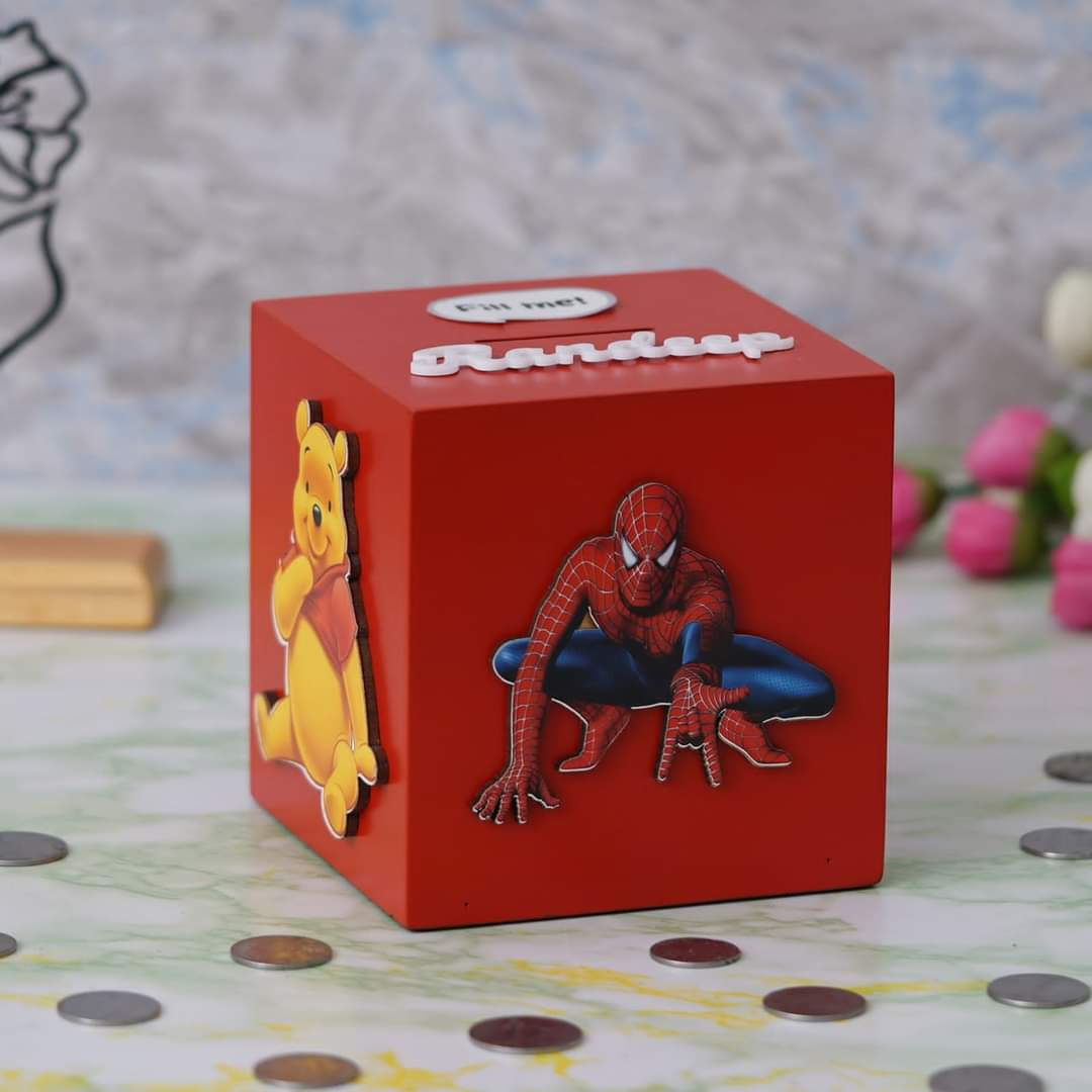 Teach your children the value of money with this amazing Piggy Bank. You can personalize it with your favorite cartoon character. and your name.