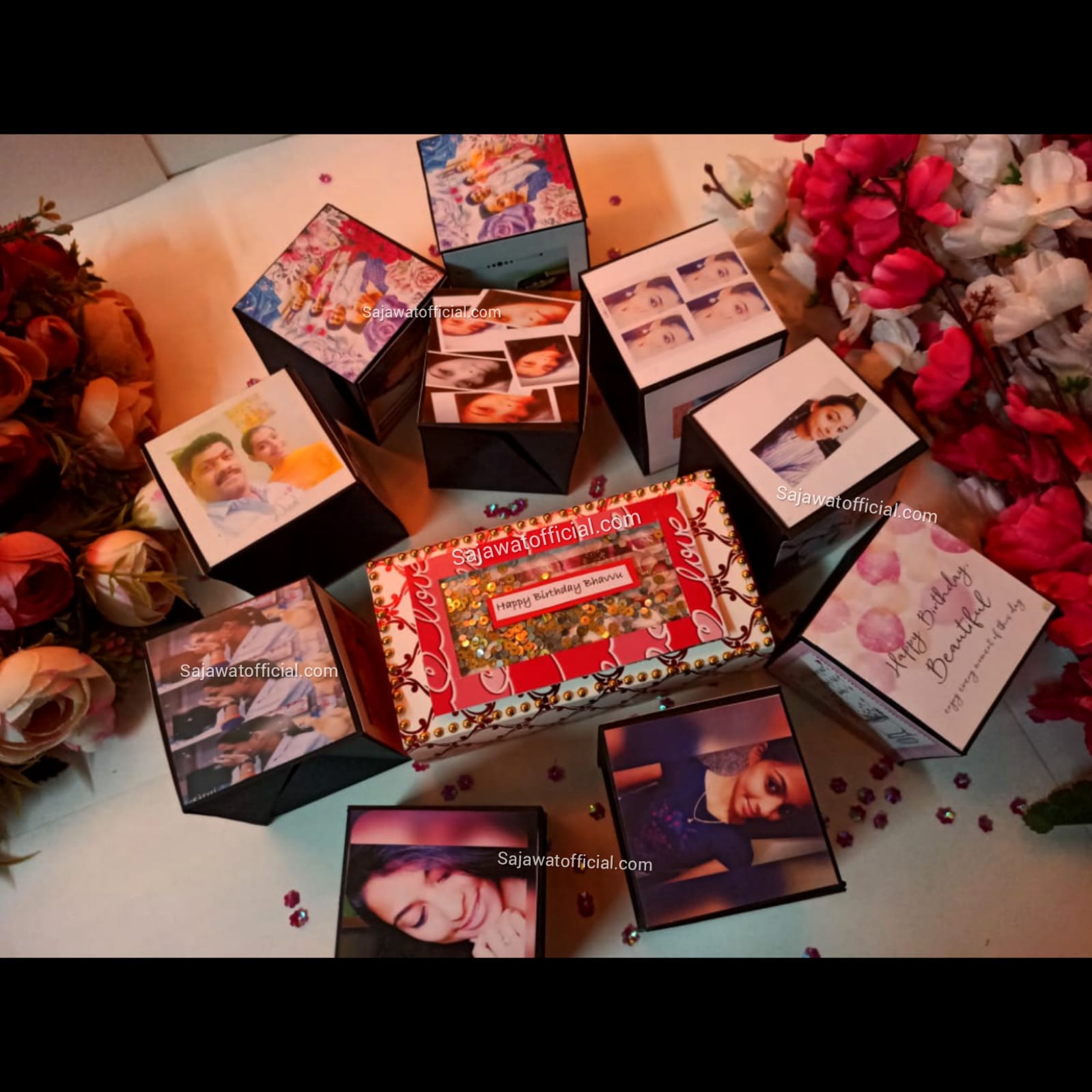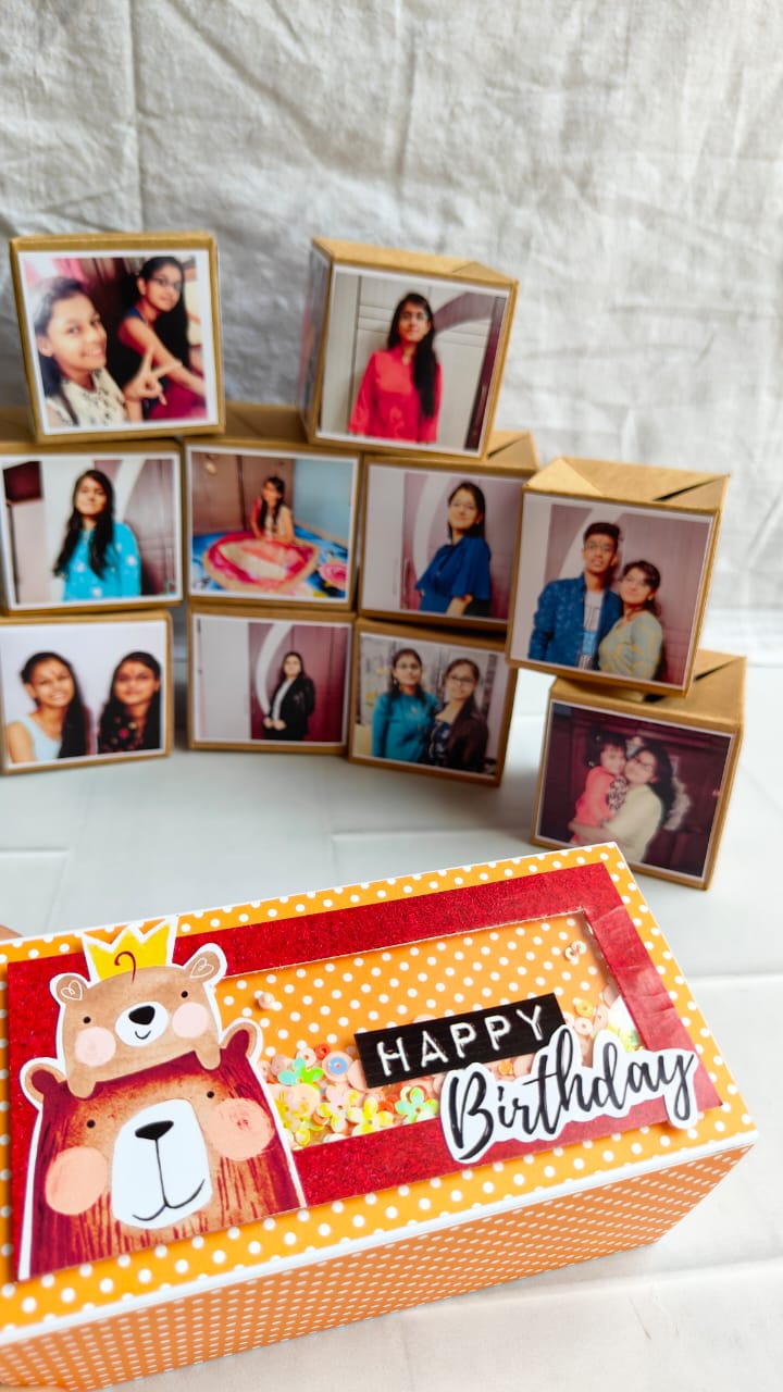 Flabbergast your loved ones with an idiosyncratic gift set of pop-up cubes. The number of cubes can be customized from one to one hundred as per your requirement in one particular set. The set is then crafted with cute small stickers, designer papers, glitter, and many more items.