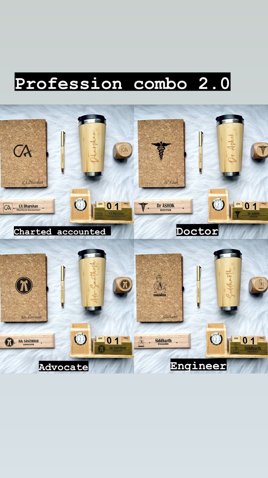 Celebrate dedication and professionalism with the Profession Combo 2.0 – a thoughtfully curated gift set tailored for Chartered Accountants, Doctors, Advocates, and Engineers. Customized with names and professional titles, this combo is not only functional but also a beautiful reminder of the pride and passion behind every profession.