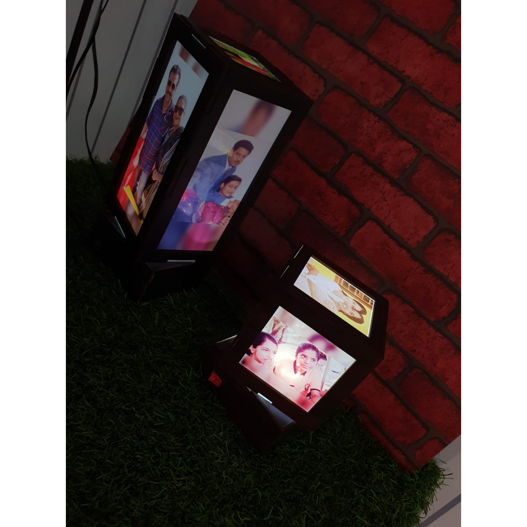 Enjoy the benefits of rotating lamps with lights in rectangular shapes. Customize it with pictures and quotes of your choice and display it in your living room.