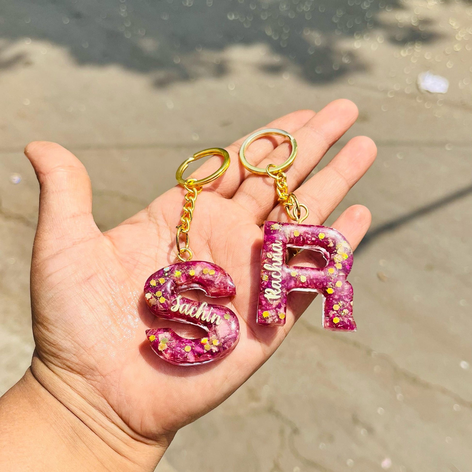Turn your initials into art with our bespoke Resin keychains – where individuality meets elegance. Crafted from crystal-clear resin and infused with rich magenta tones, golden sparkles, and delicate floral accents, each keychain is more than just a letter – it’s a memory preserved in beauty.