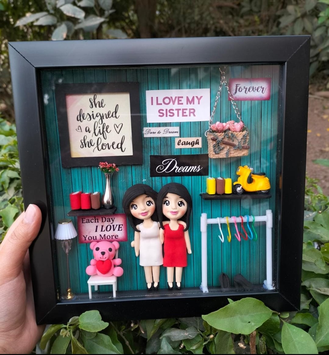 These dolls are handmade by our talented craftsmen and painted by specialist artists. It is a set of clay figures in a wooden design frame.