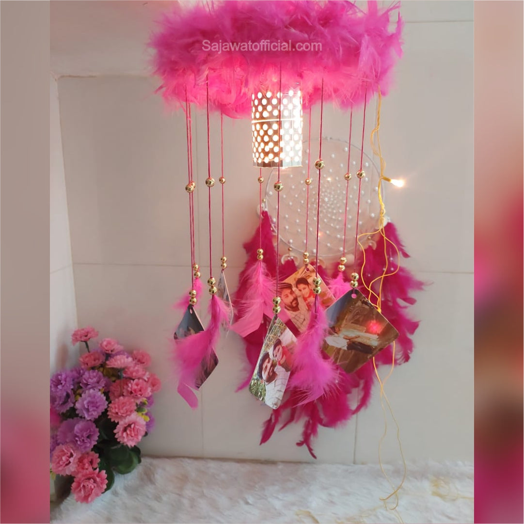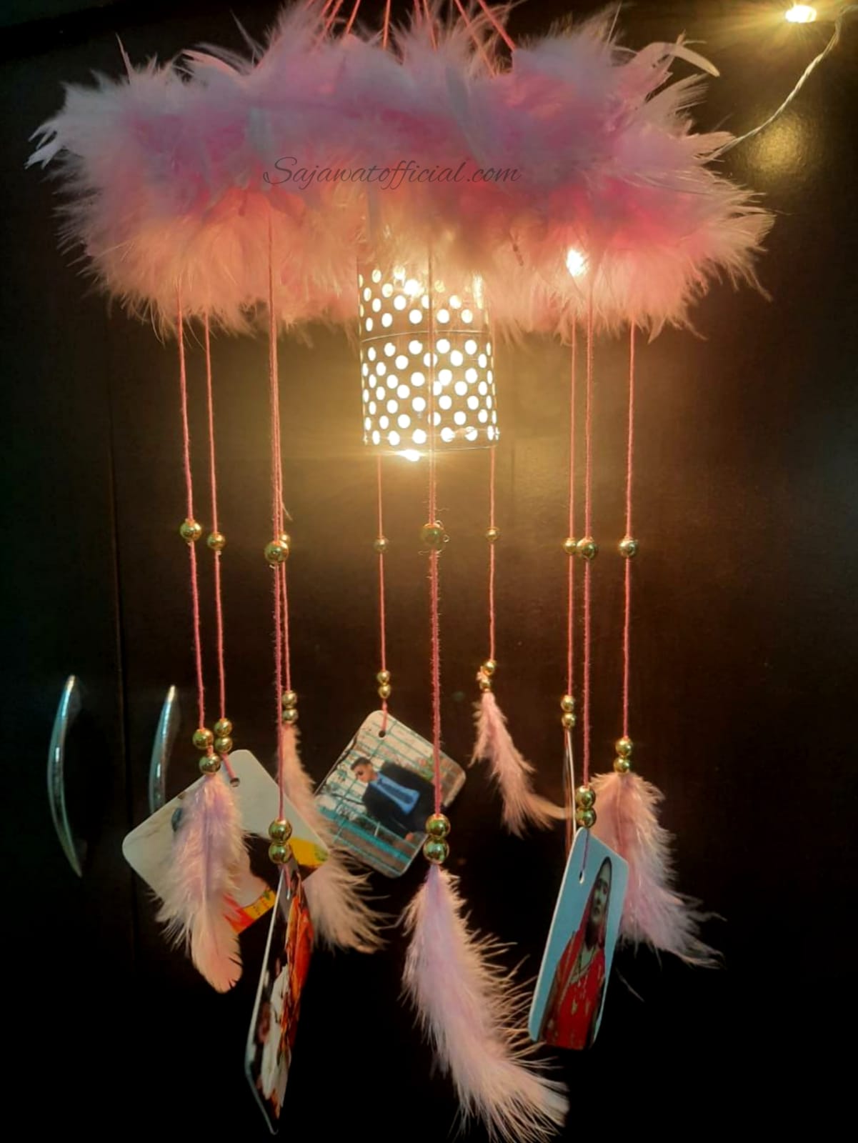 Looking for interesting home decor? Your search ends here with this distinctive artwork: a Windchime that casts a beautiful shadow on the walls. It has customizable pictures decorated with beads, and feathers and enhanced with a center to make it look more radiant. Available in different bright colors.