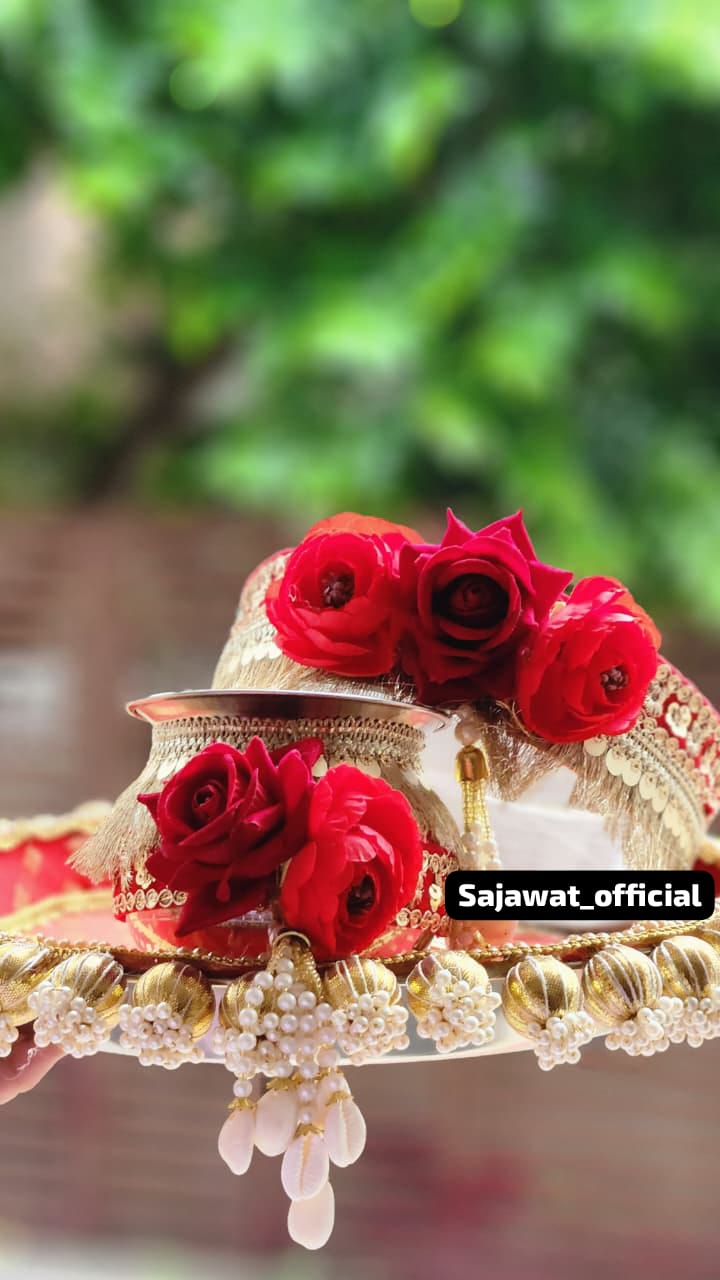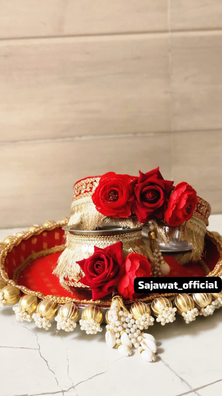 This Karwa Chauth Thali Combo brings together tradition and artistry. Ideal for pooja and gifting, it reflects cultural richness and adds sophistication to your special day.