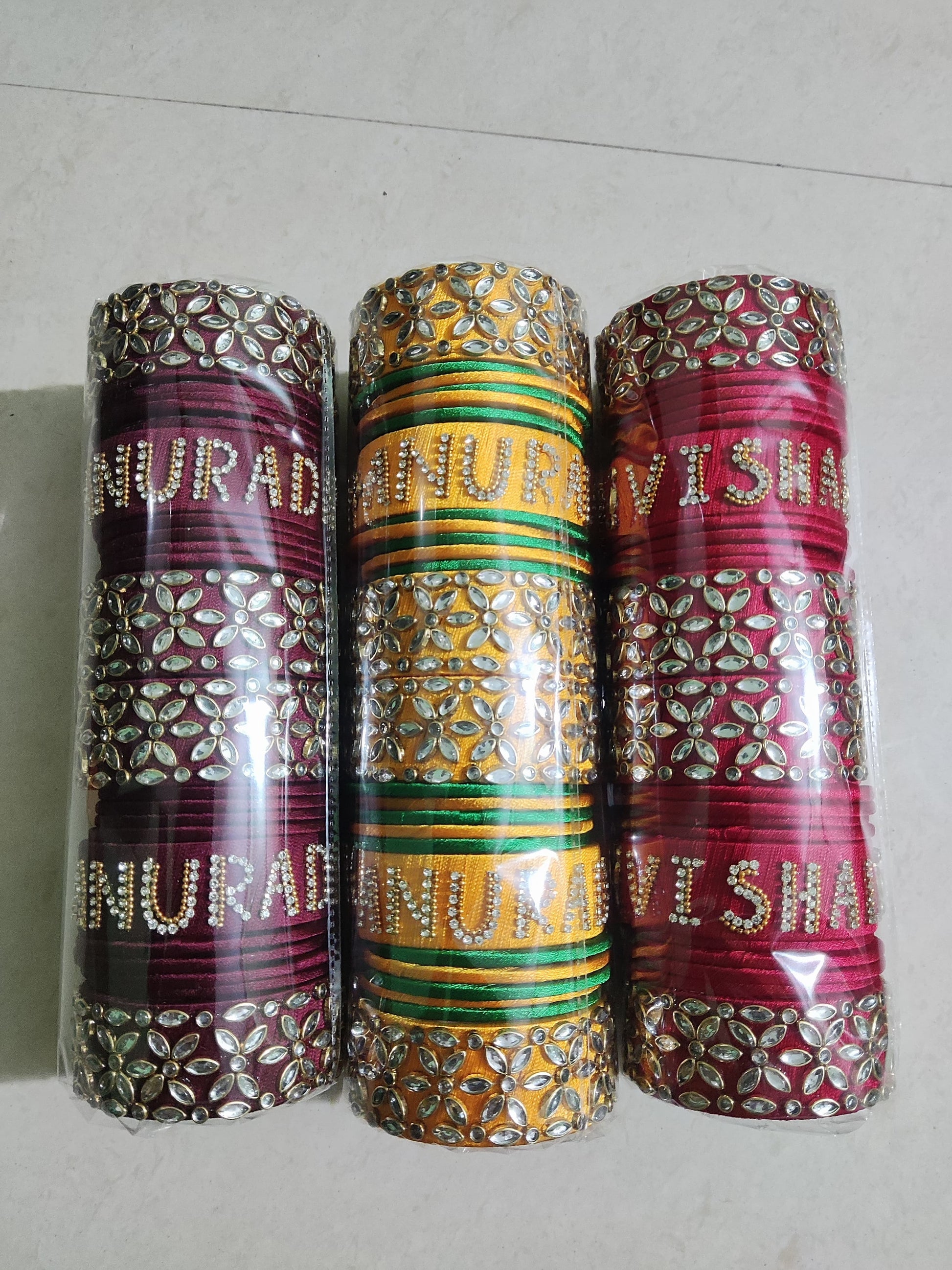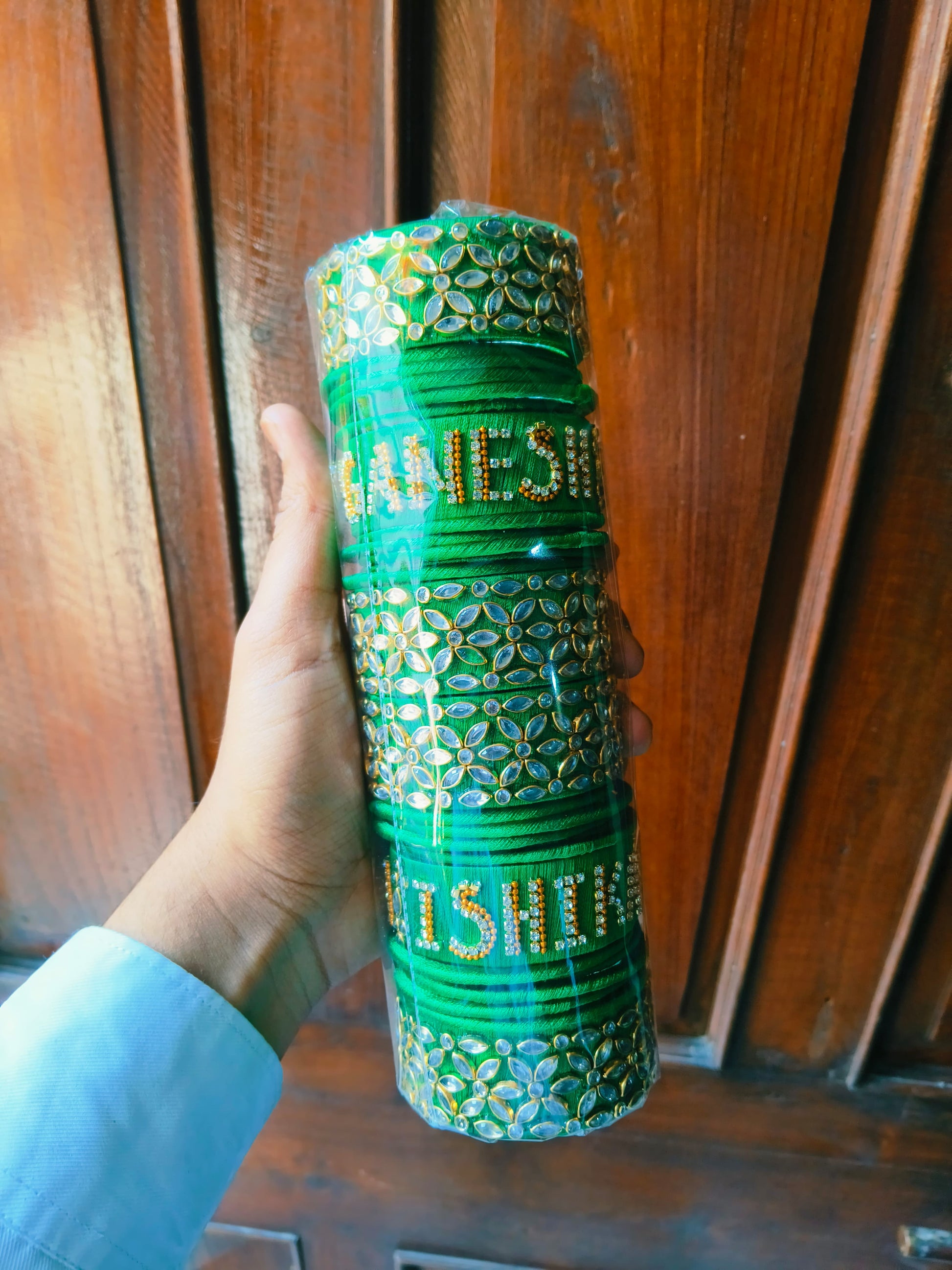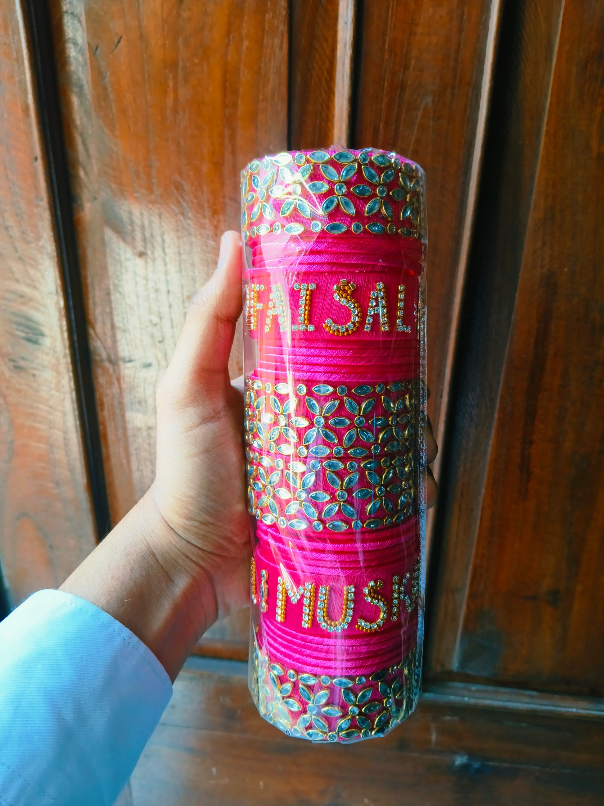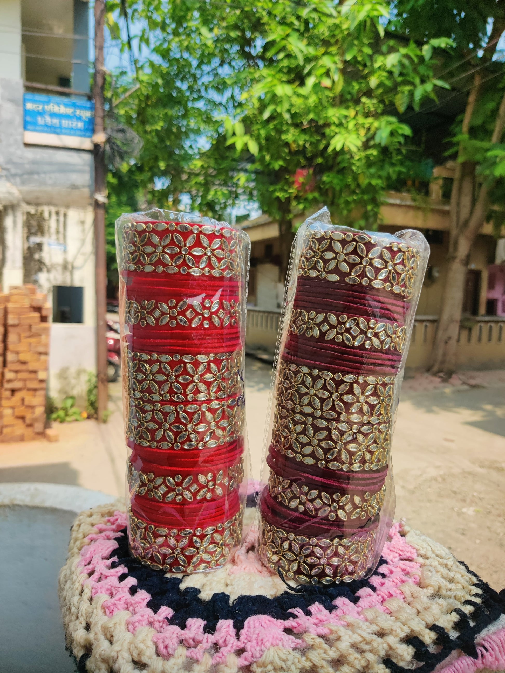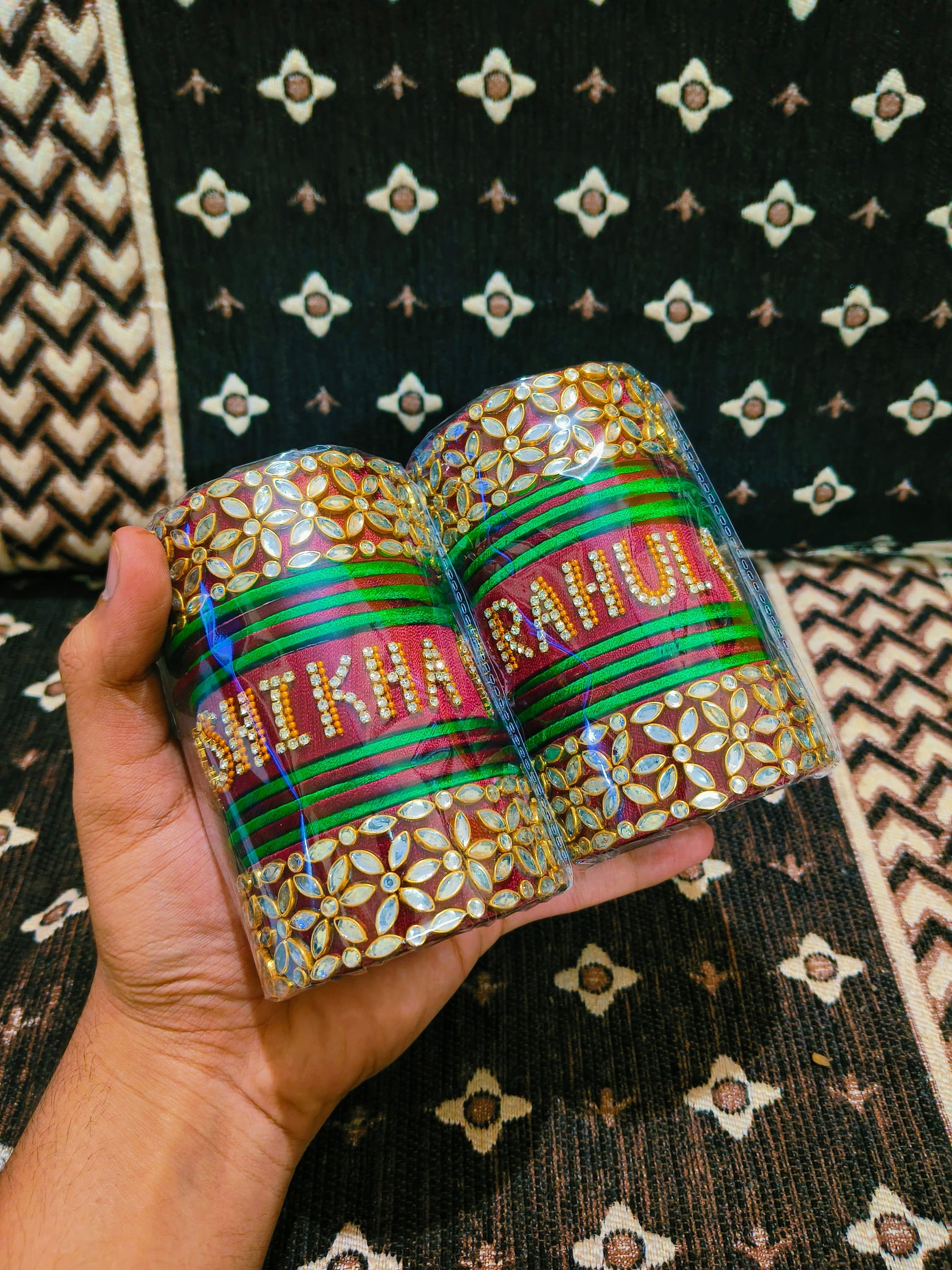 Add a traditional charm to your Karwa Chauth look with our Thread Bangle Set. Crafted with vibrant threads and elegant detailing, these bangles perfectly complement festive attire, making your celebration stylish, colorful, and rooted in tradition.