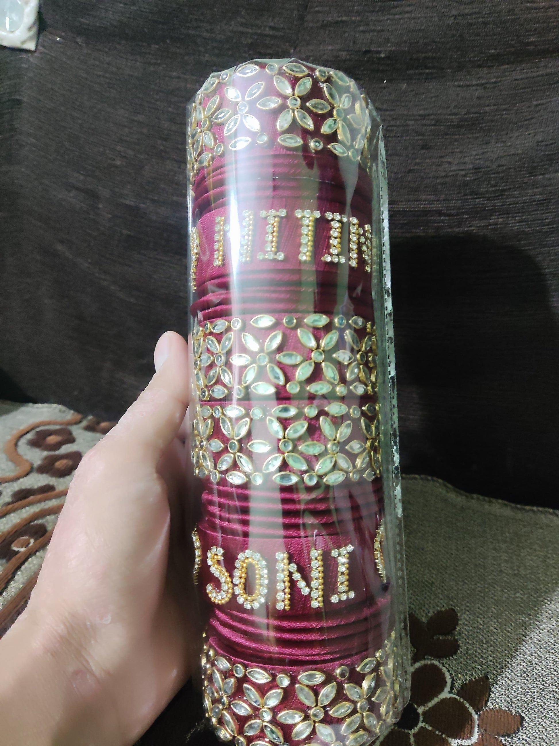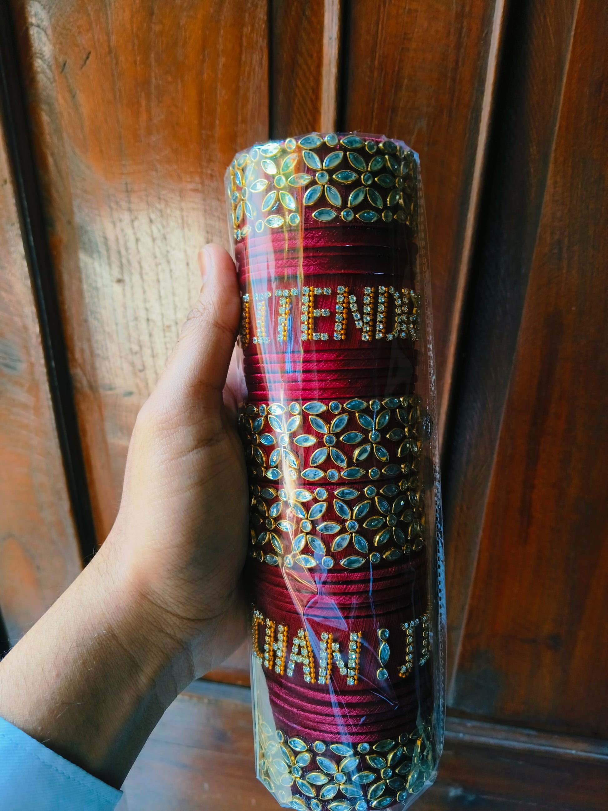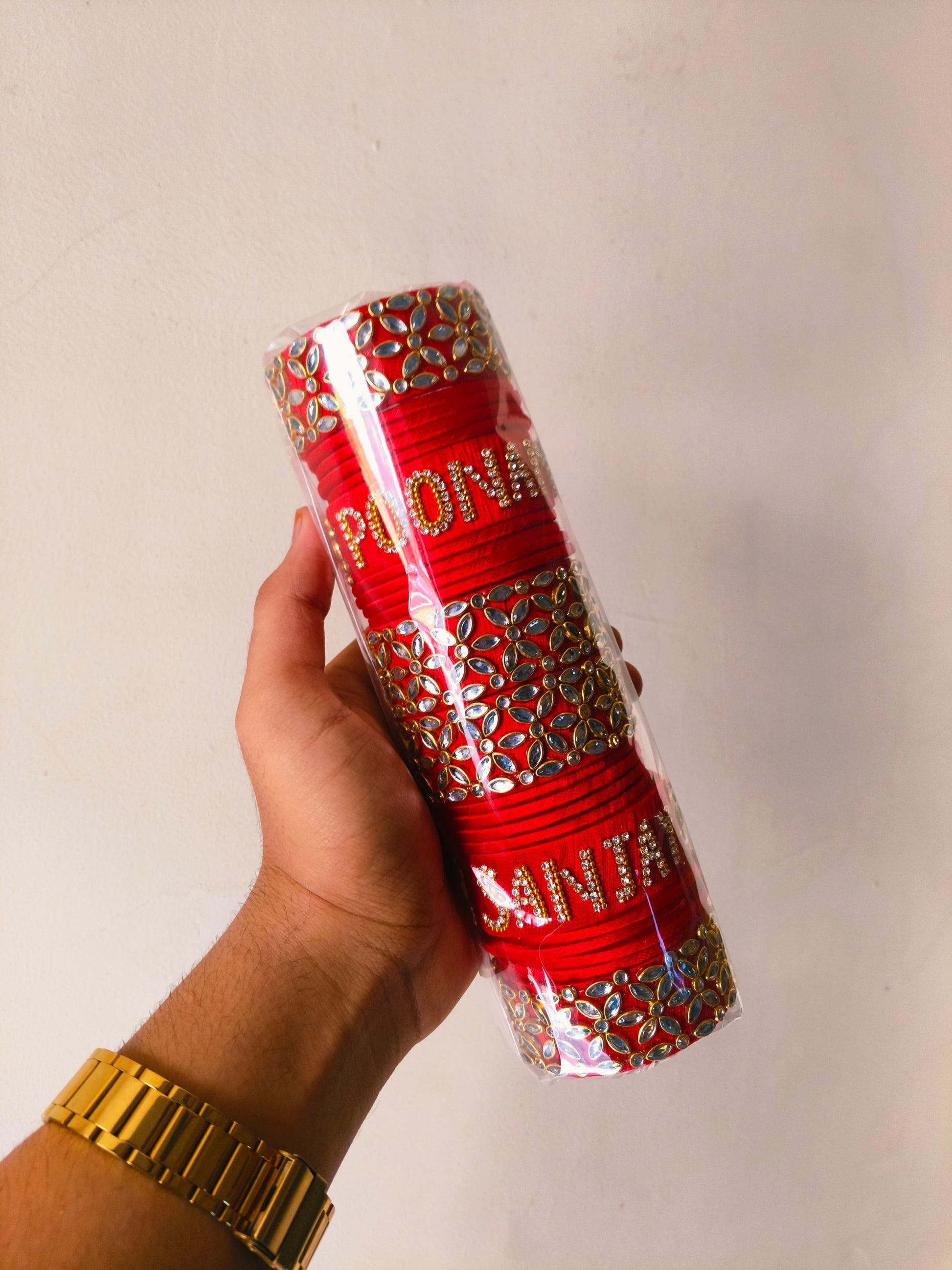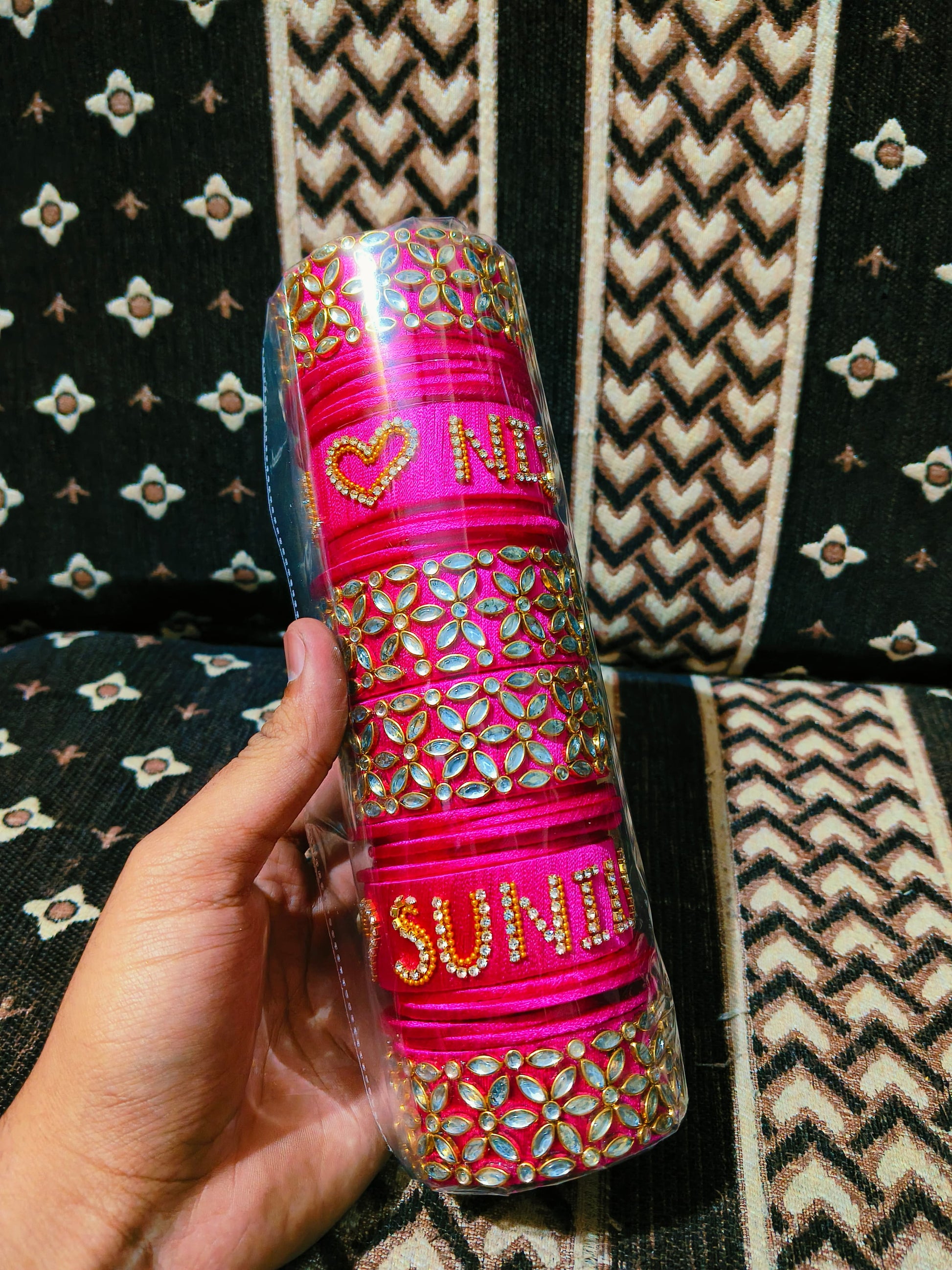 Add a traditional charm to your Karwa Chauth look with our Thread Bangle Set. Crafted with vibrant threads and elegant detailing, these bangles perfectly complement festive attire, making your celebration stylish, colorful, and rooted in tradition.