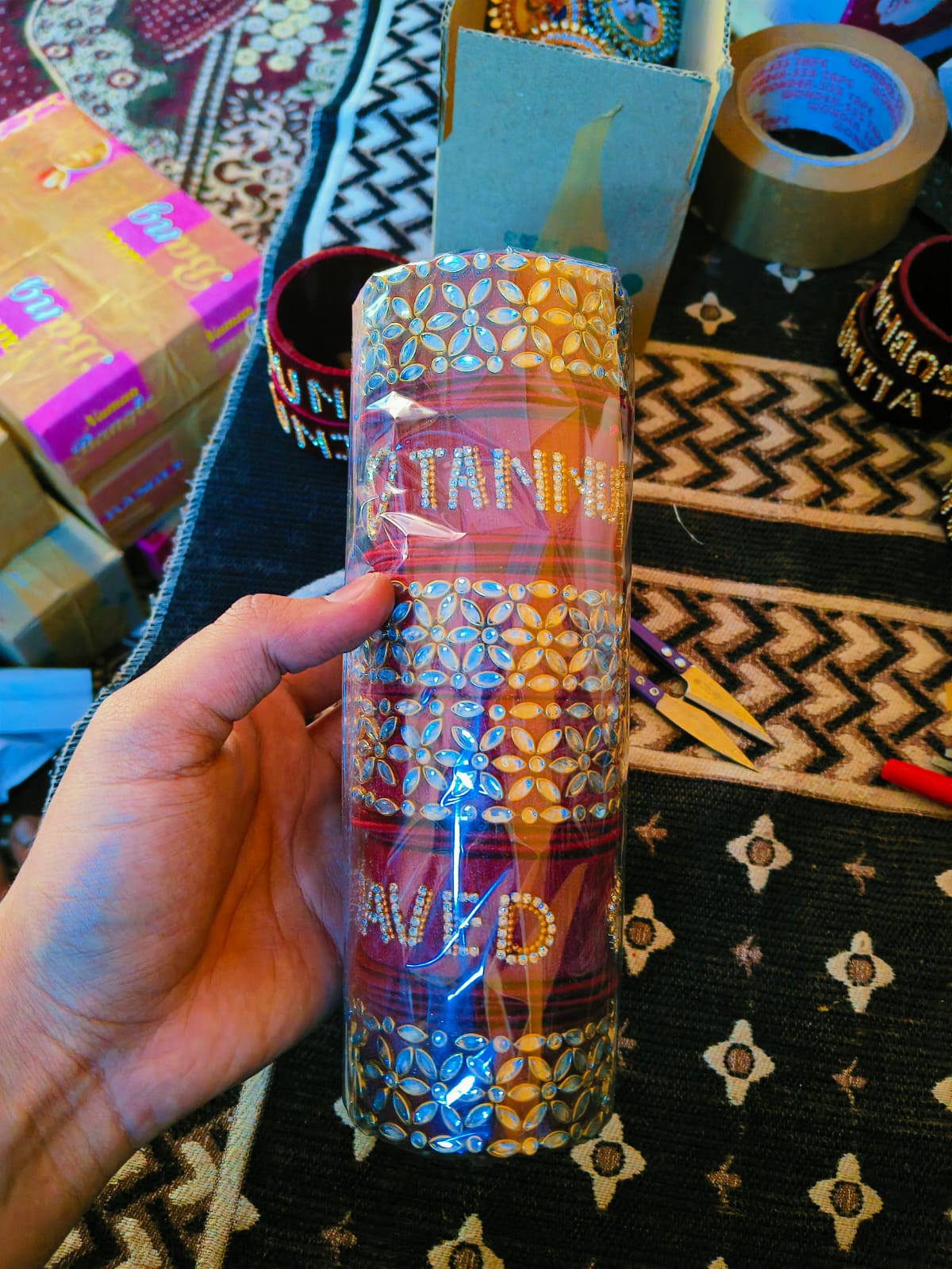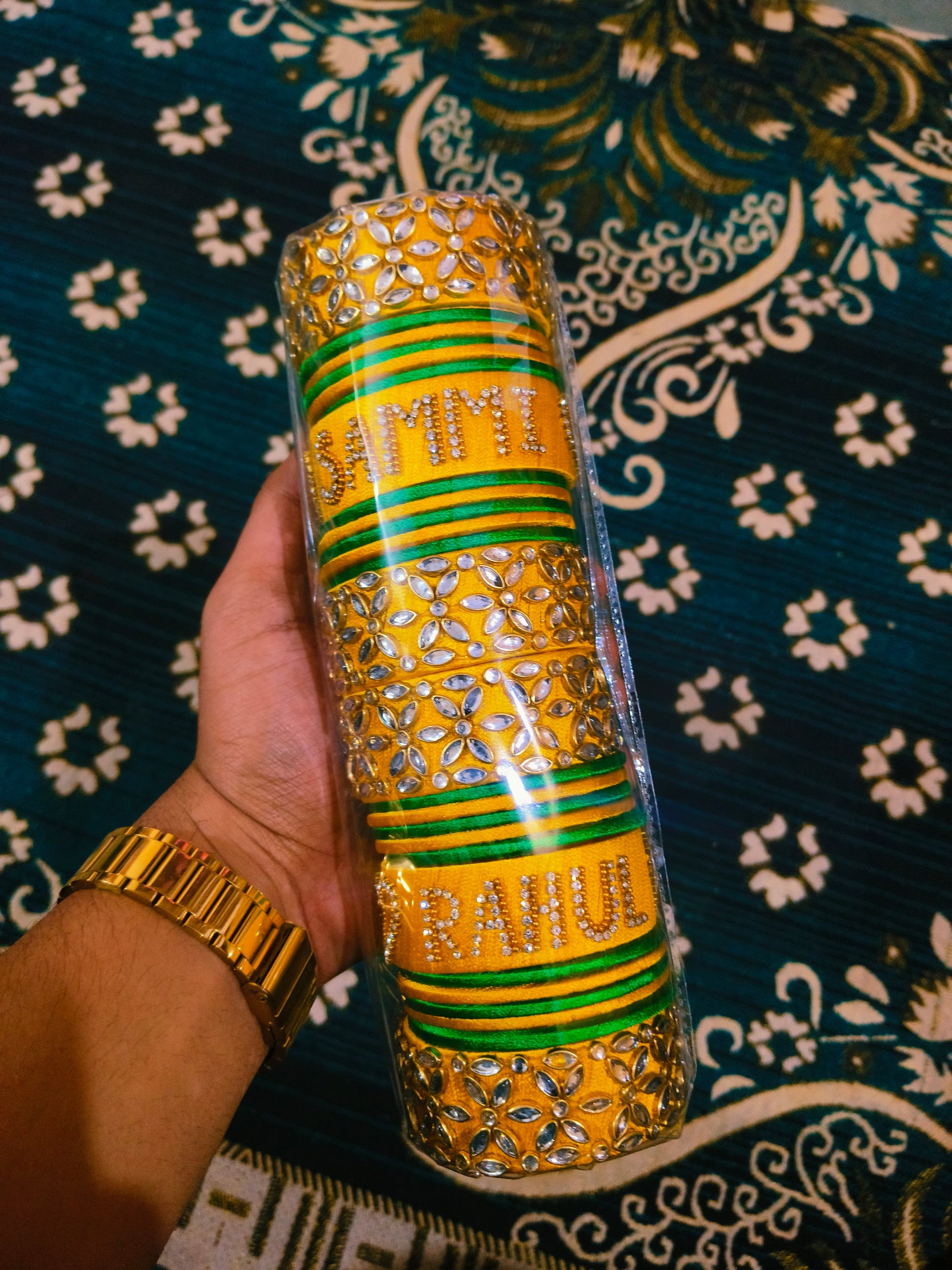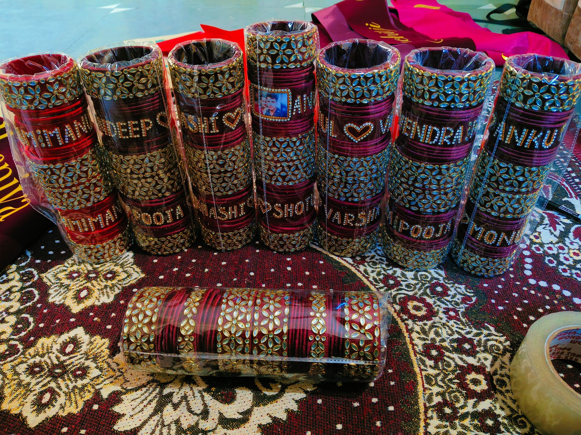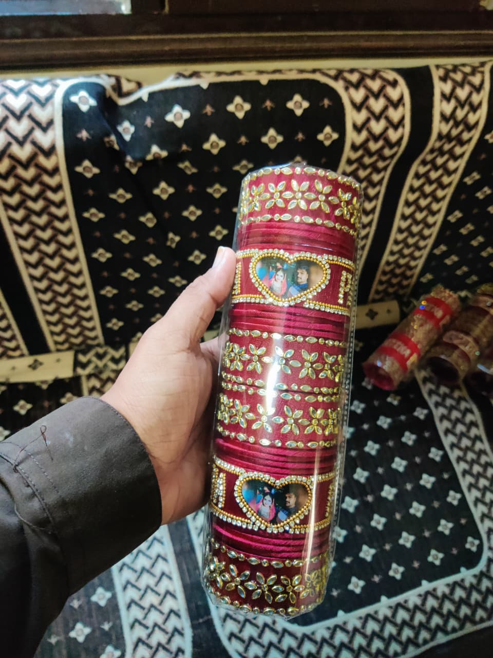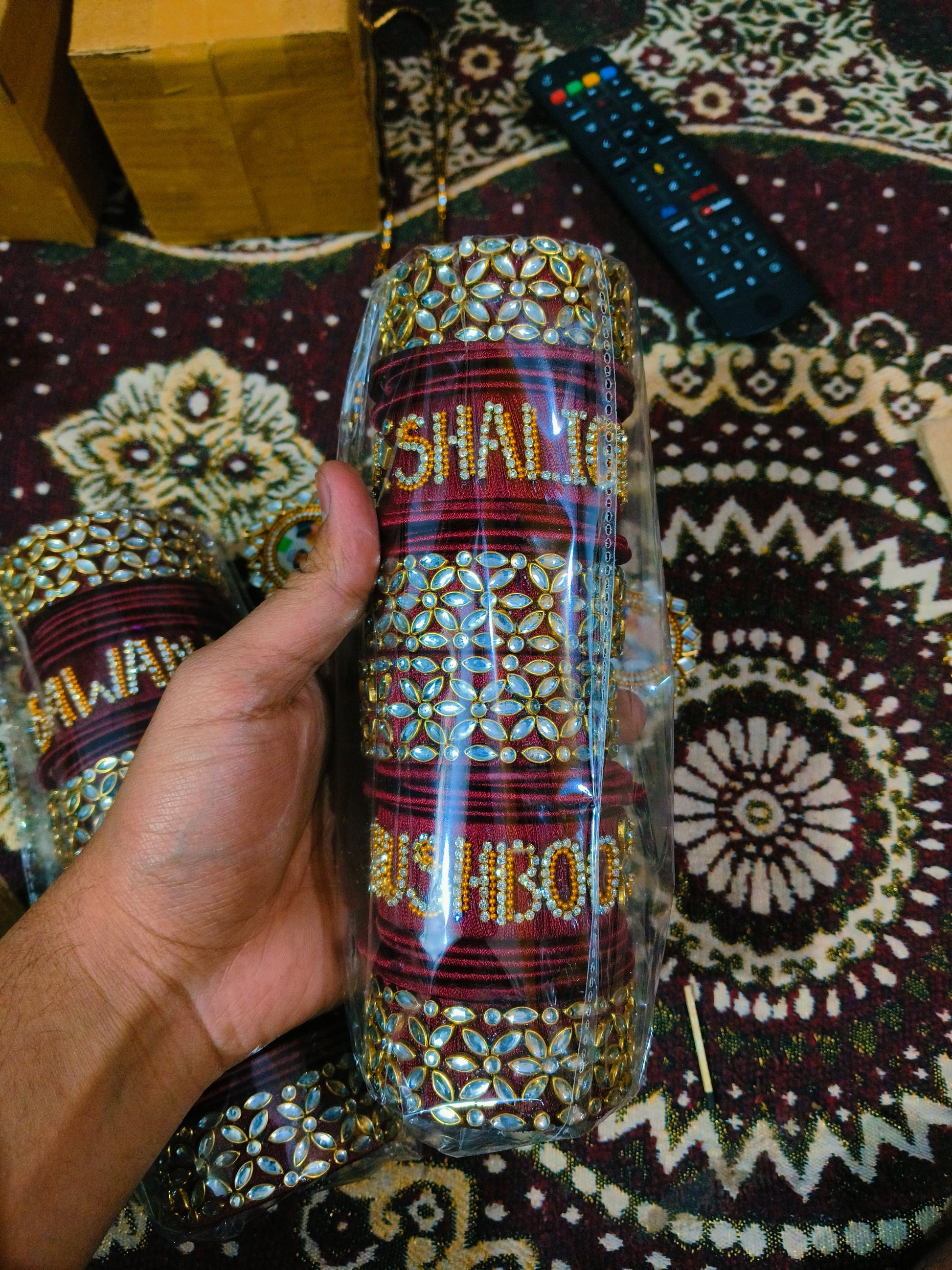 Add a traditional charm to your Karwa Chauth look with our Thread Bangle Set. Crafted with vibrant threads and elegant detailing, these bangles perfectly complement festive attire, making your celebration stylish, colorful, and rooted in tradition.