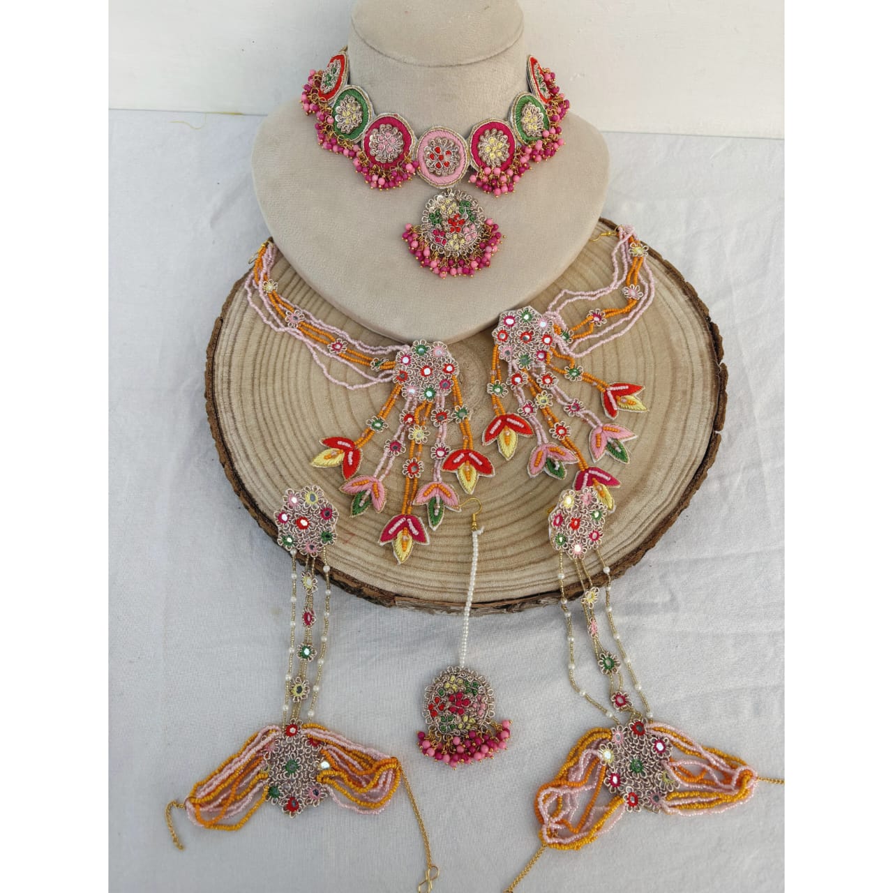 Celebrate in style with our Thread Jewelry Set 8.0, beautifully handcrafted with colorful thread work, beads, and intricate floral patterns. Perfect for haldi, mehendi, and festive occasions, this lightweight set adds vibrant elegance and can be customized to match your outfit.